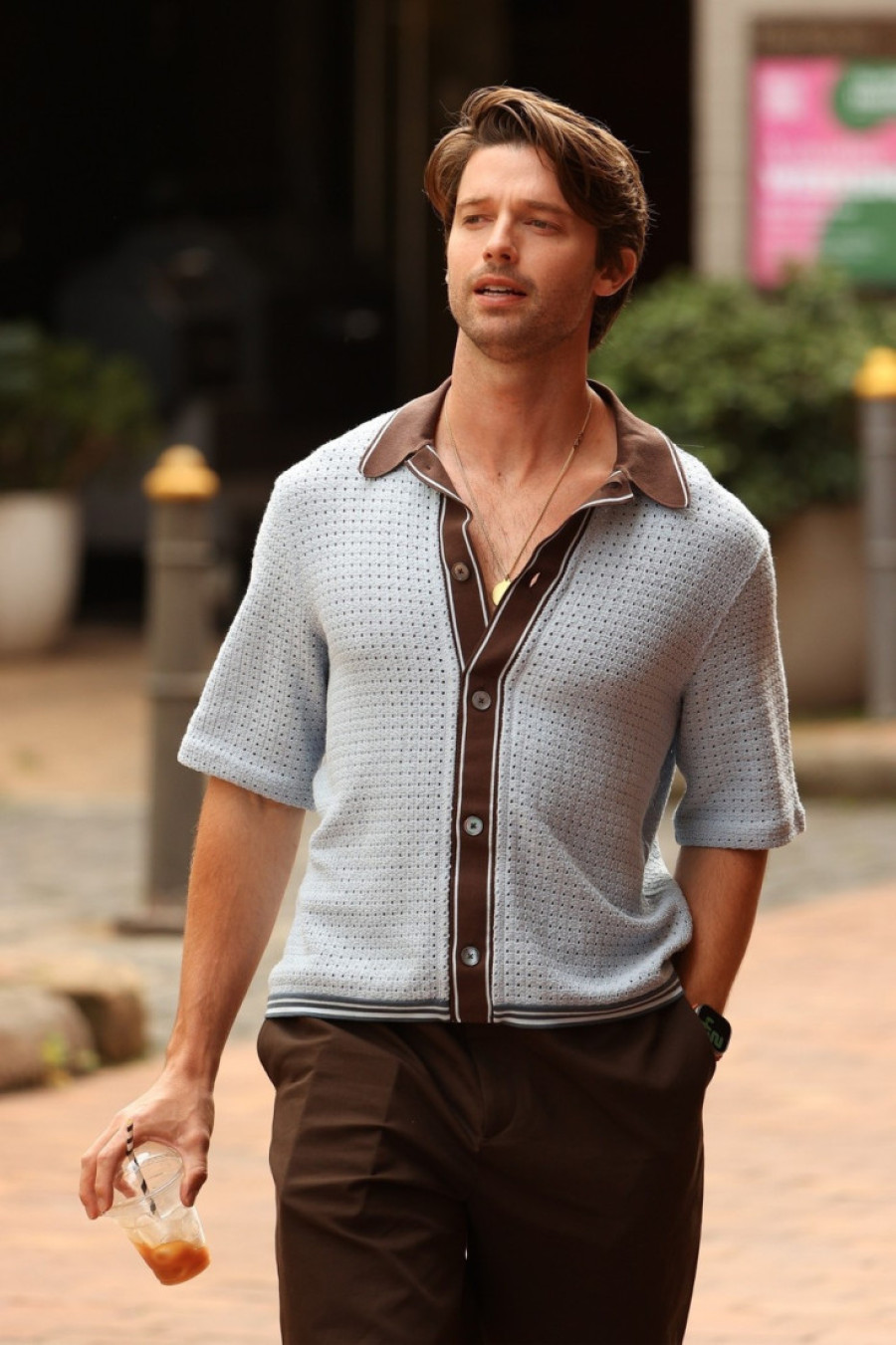 Patrika su paparaci fotografisali u veoma interesantnom izdanju, pa su ga prozvali da se vratio u sedamdesete. Nosio je, naime, svetloplavu košulju na kojoj su kragna i deo gde su dugmići u boji pantalona. A one su, što je mnogima privuklo pažnju, baš onakve kave danas mladi vole da nose - široke i do poda.
