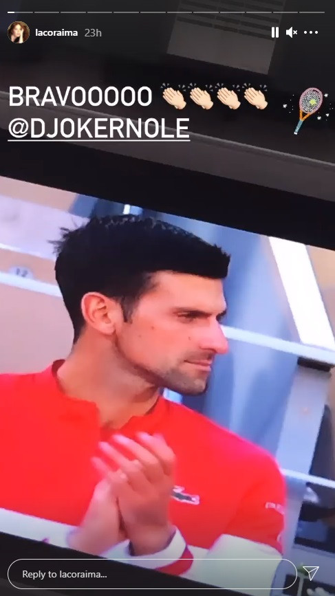 Glumica je na svom Instagram nalogu u okviru priče objavila Novakovu sliku sa meča, iznad koje je napisala – Bravo!