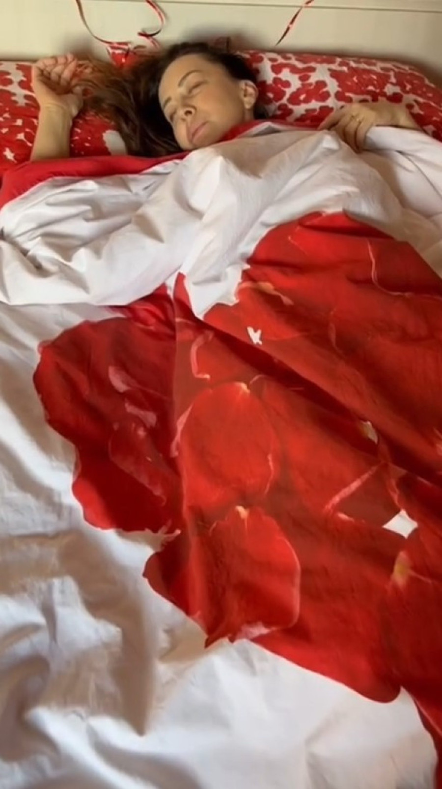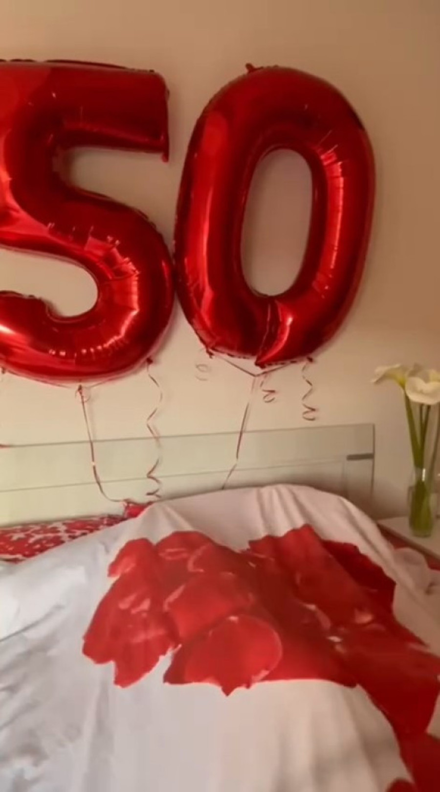 Ona je, naime, objavila snimak na kom se vidi da ju je neko snimao dok je spavala, a kada se probudila, iza sebe je videla balone u obliku broja 50.