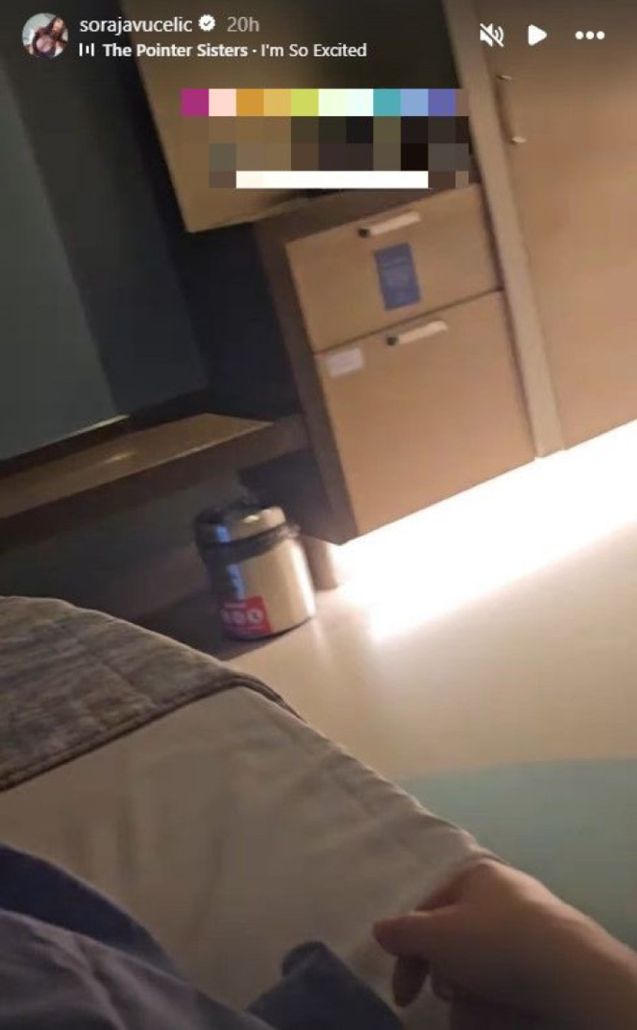 Ona je pokazala bolničku sobu u kojoj leži, a noge su joj zavijene od kolena do dole. Starleta je snimila sebe i kako prima infuziju, te se pretpostavlja da je intervenciju već završila.