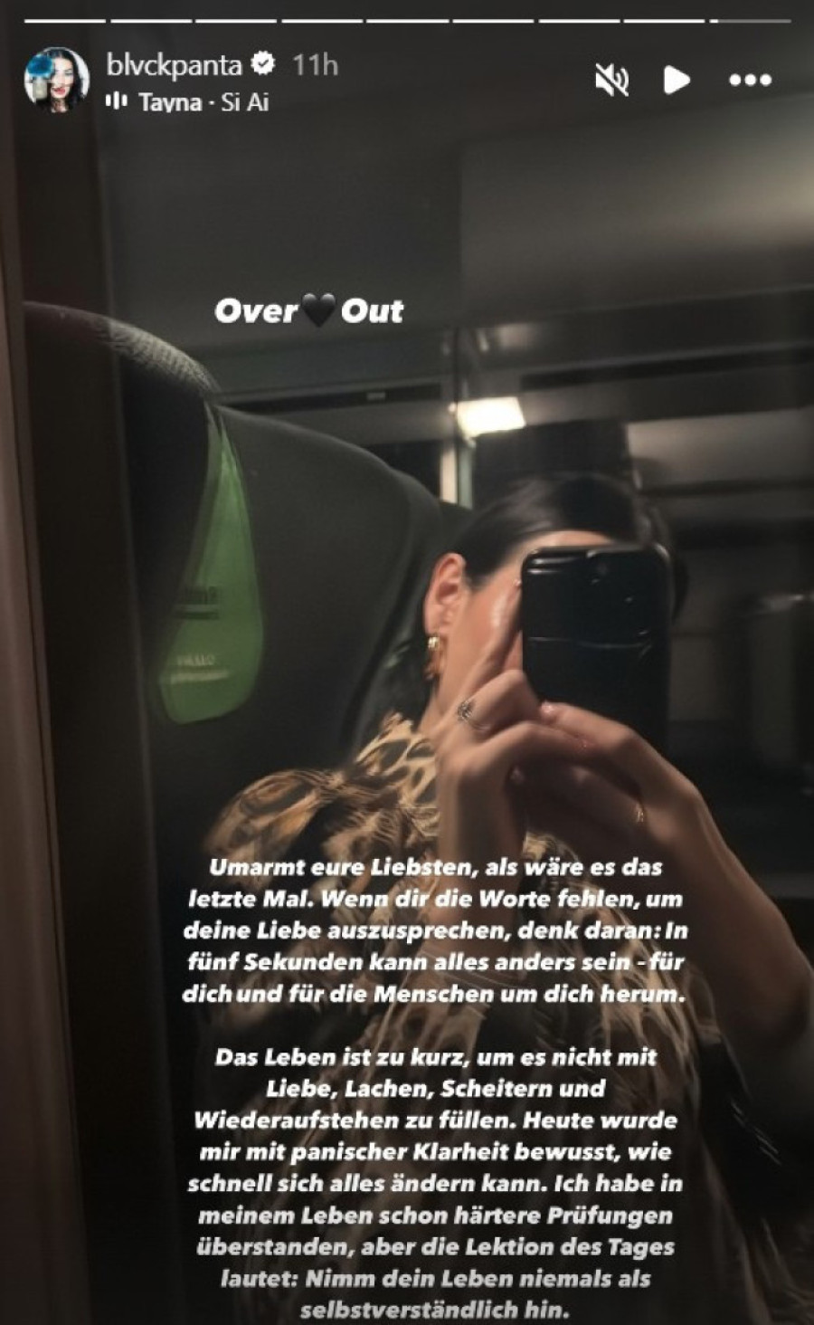 - Zagrlite svoje najmilije kao da je poslednji put. Ako ti ponestane reči da izraziš ljubav, seti se: za pet sekundi sve može da se promeni, za tebe i za ljude oko tebe. Život je prekratak da ga ne ispuniš ljubavlju, smehom, padovima i ponovnim ustajanjima. Danas sam sa paničnom jasnoćom shvatila koliko se sve brzo može promeniti. U životu sam prošla i teže trenutke, ali današnja lekcija glasi: nikada ne uzimaj život zdravo za gotovo - dodala je ona, te se nakon ove teške situacije i našalila:
