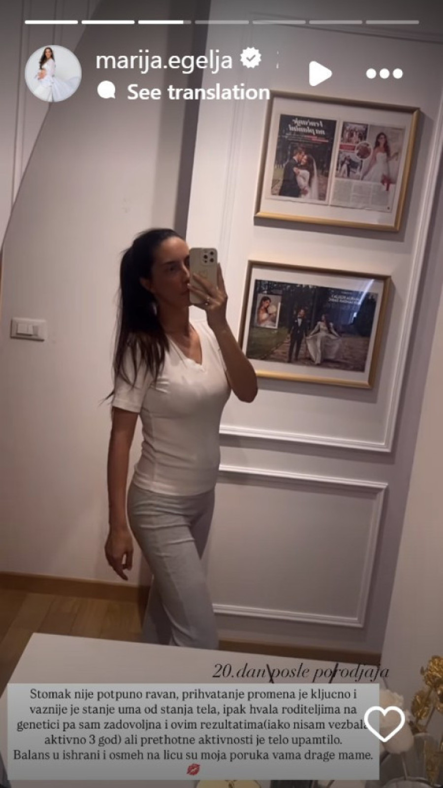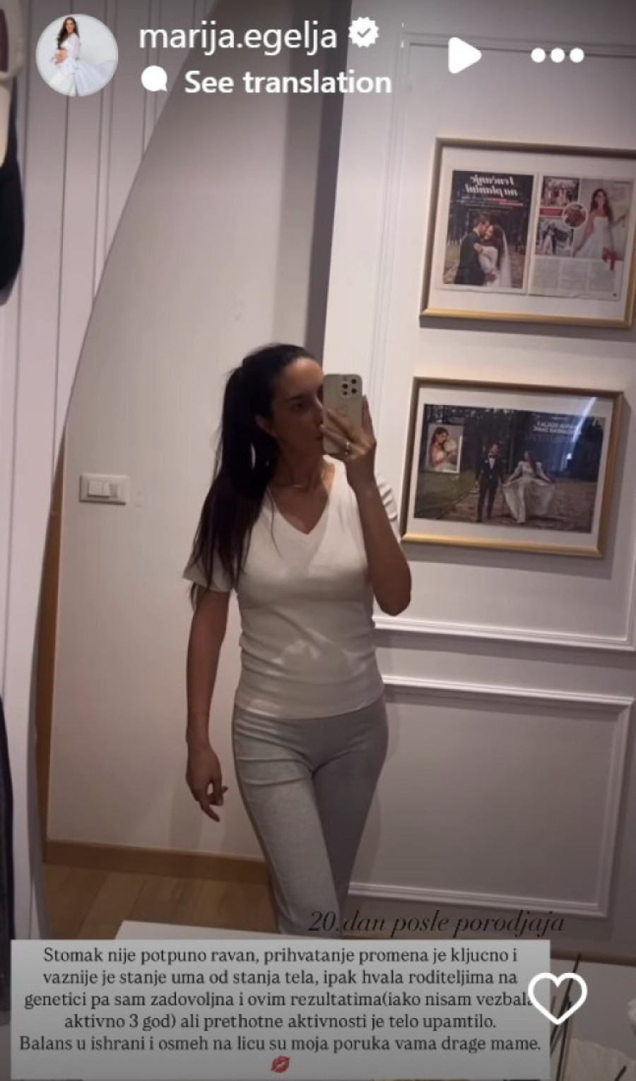 Popularna voditeljka televizije "Pink", Marija Egelja, koja se pre samo tri nedelje porodila, redovno trenutke iz svog života sa pratiocima na društvenim mrežama.