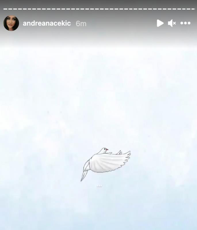 U snimku je beli golub koji leti kroz oblake, a njime je Andreana izrazila tugu zbog odlaska starijeg kuma.