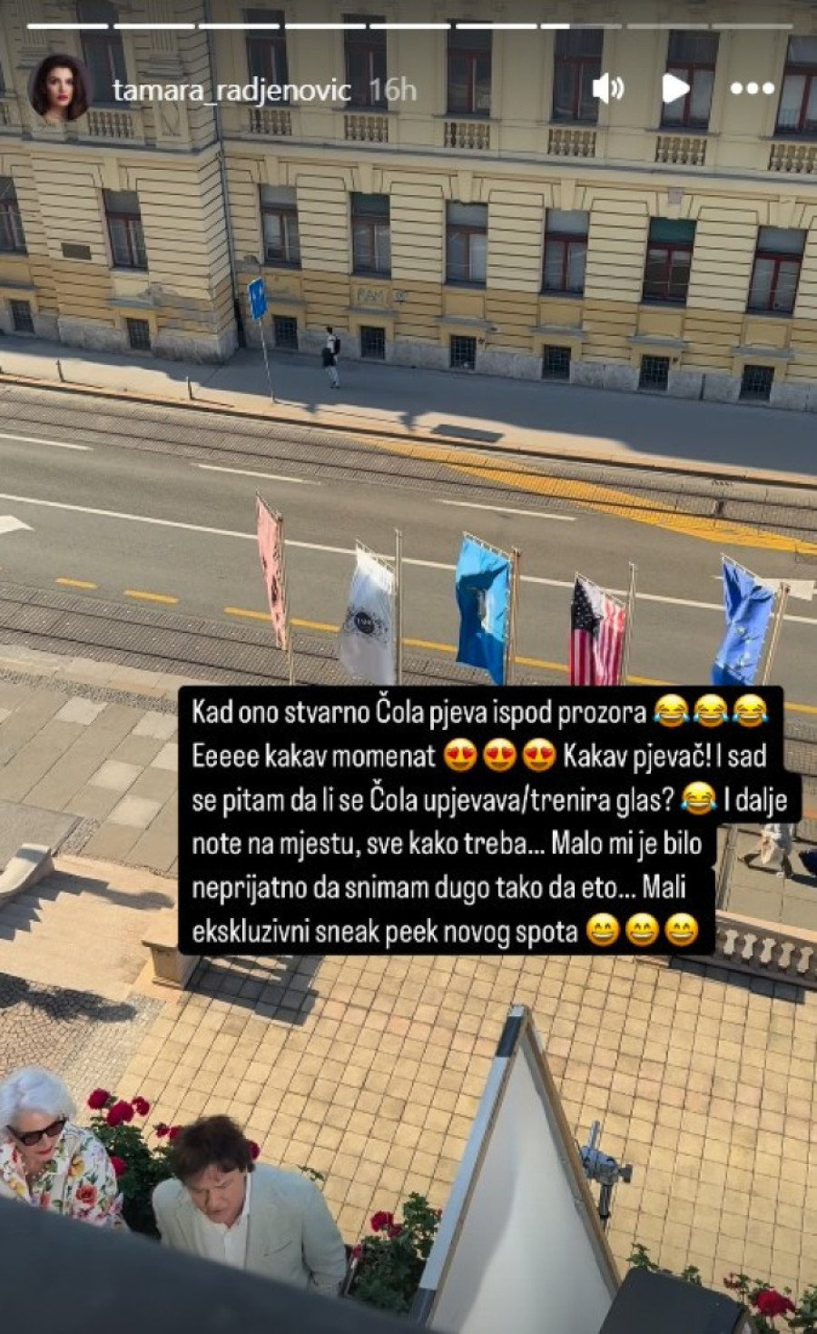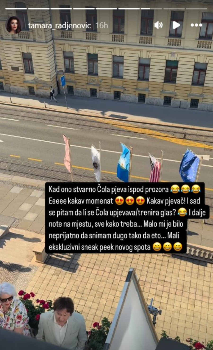 – Kad ono, stvarno Čola peva ispod prozora! Eeeee kakav momenat! Kako peva! Sad se pitam da li se Čola trenira glas? I dalje note na mestu, sve kako treba... – dodala je Tamara.
