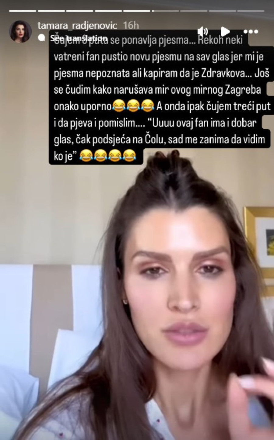– Čujem, tri puta se ponavlja pesma… Rekoh, neki vatreni fan pustio novu pesmu na sav glas, jer mi je nepoznata ali kapiram da je Zdravkova… Još se čudim kako narušava mir ovog mirnog Zagreba onako uporno – napisala je Tamara uz snimak.