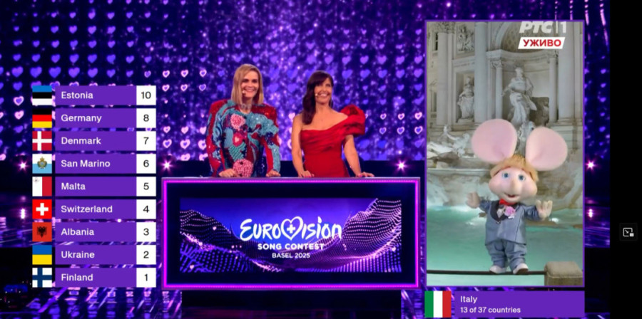 Sedamnaestog maja veliko finale takmičenja za "Pesmu Evrovizije" 2025. godine održano je u Bazelu. Šou je otvorio prošlogodišnji pobednik, Nemo, u raskošnoj haljini i izvodeću numeru "The Code" s kojom je onda i odneo evrovizijski trofej svojoj kući.