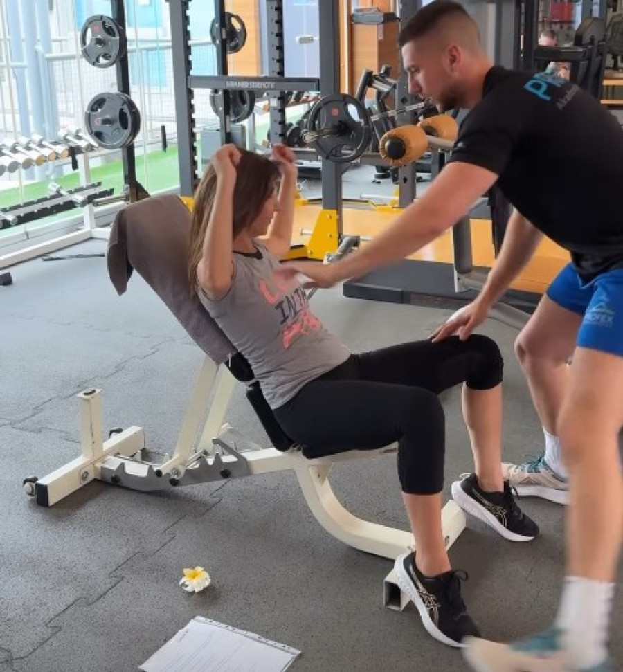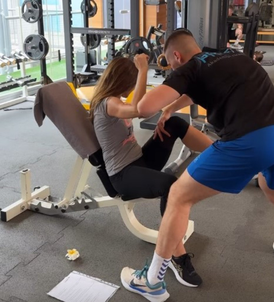 Sanja Marinković se preznojava u teretani: Mišićavi momak joj pomaže!