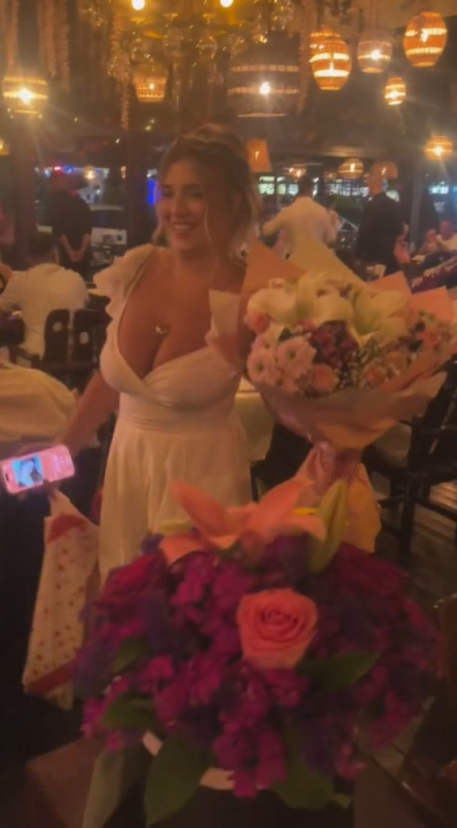 Rođendanska svečanost održana je u prestižnom restoranu sa pogledom na more, gde je slavljenica okupila najbliže prijatelje. Vesela atmosfera bila je obogaćena raskošnim dekoracijama – sto je bio prekriven raznobojnim cvećem, dok su se oko njega šepurili veliki baloni, stvarajući bajkovitu scenografiju.