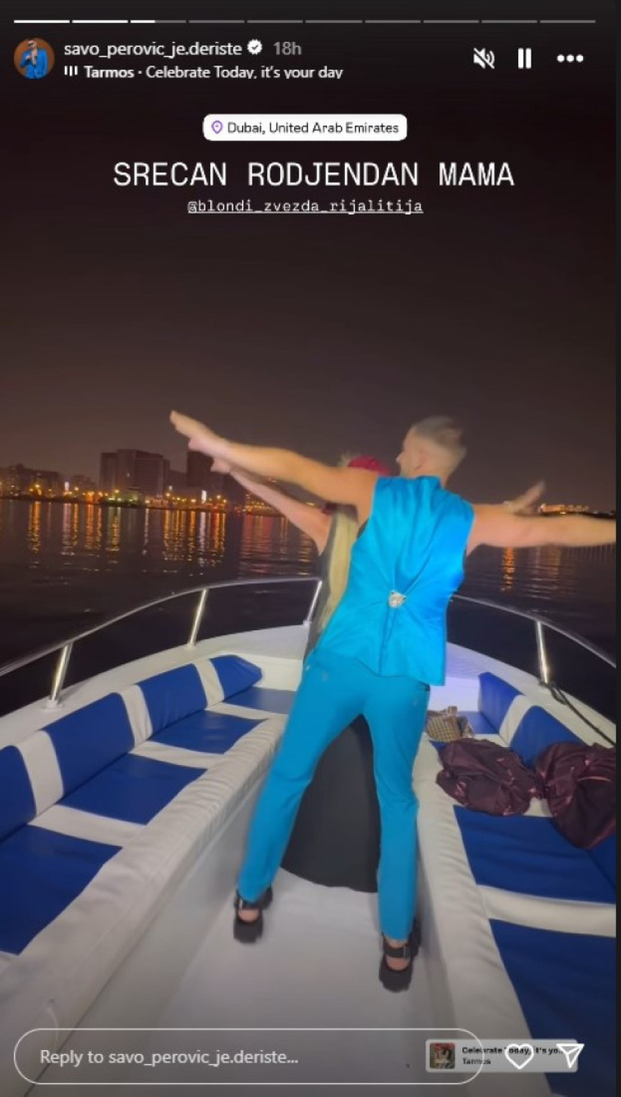 Pevač Savo Perović trenutno odmara u luksuznom Dubaiju, gde vreme provodi u društvu svoje majke, pevačice Suzane Perović, poznatije kao Blondi.