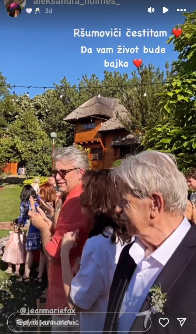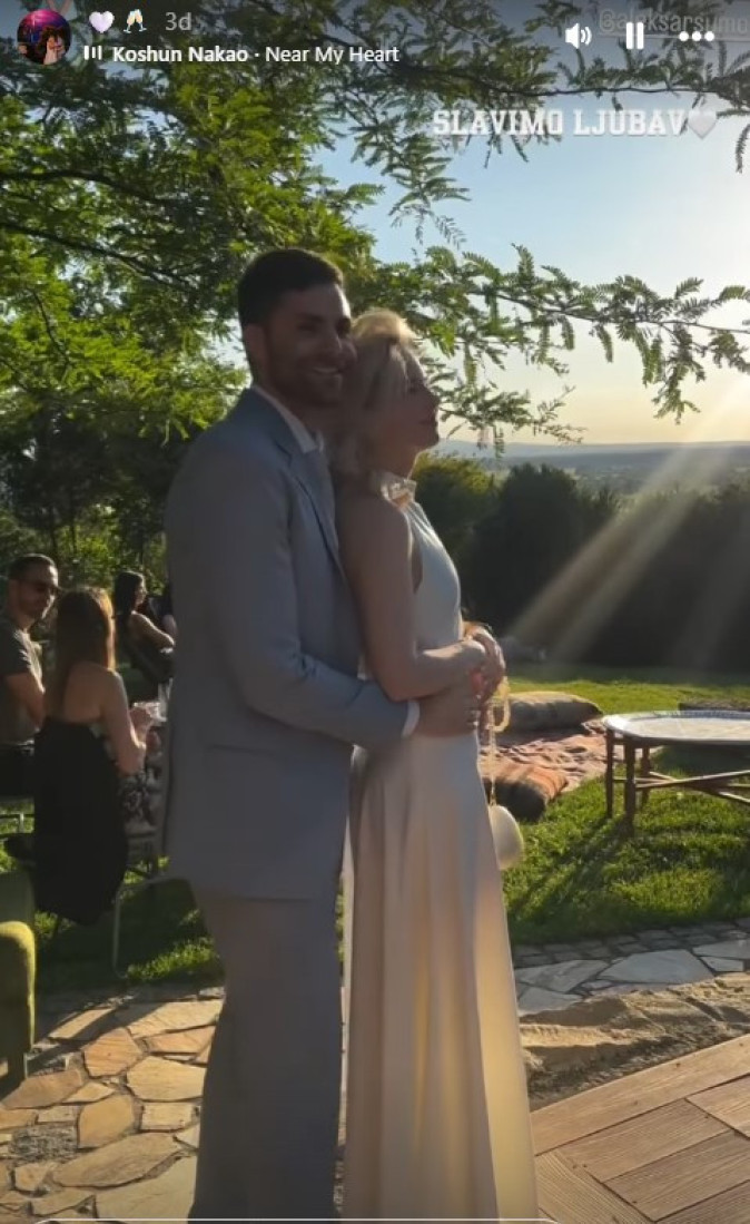 Aleksa i njegova supruga venčali su se u intimnoj atmosferi, a mlada je zablistala u elegantnoj beloj venčanici do poda. Ršumov unuk se, takođe, doterao, te je obukao svetlo-plavo odelo, a ceremonija je upriličena u prelepom ambijentu na otvorenom.
