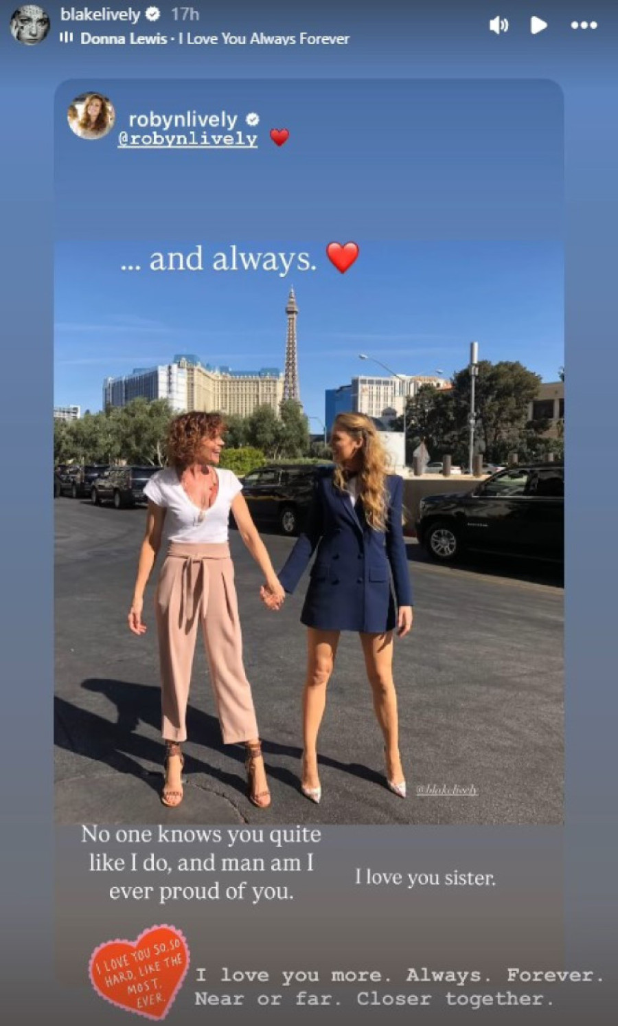 Ubrzo po odbacivanju tužbe Džastina Baldonija starija sestra Blejk Lajvli, Robin, oglasila se na svom Instagramu, pa je glumici pružila ogromnu podršku ne skrivajući koliko je bila, ali i ostala ponosna na nju. Iako spor ni u kom obliku nije spomenula, mnogi su odmah "povezali" - da slavi navodni trenutni trijumf zajedno s Blejk.