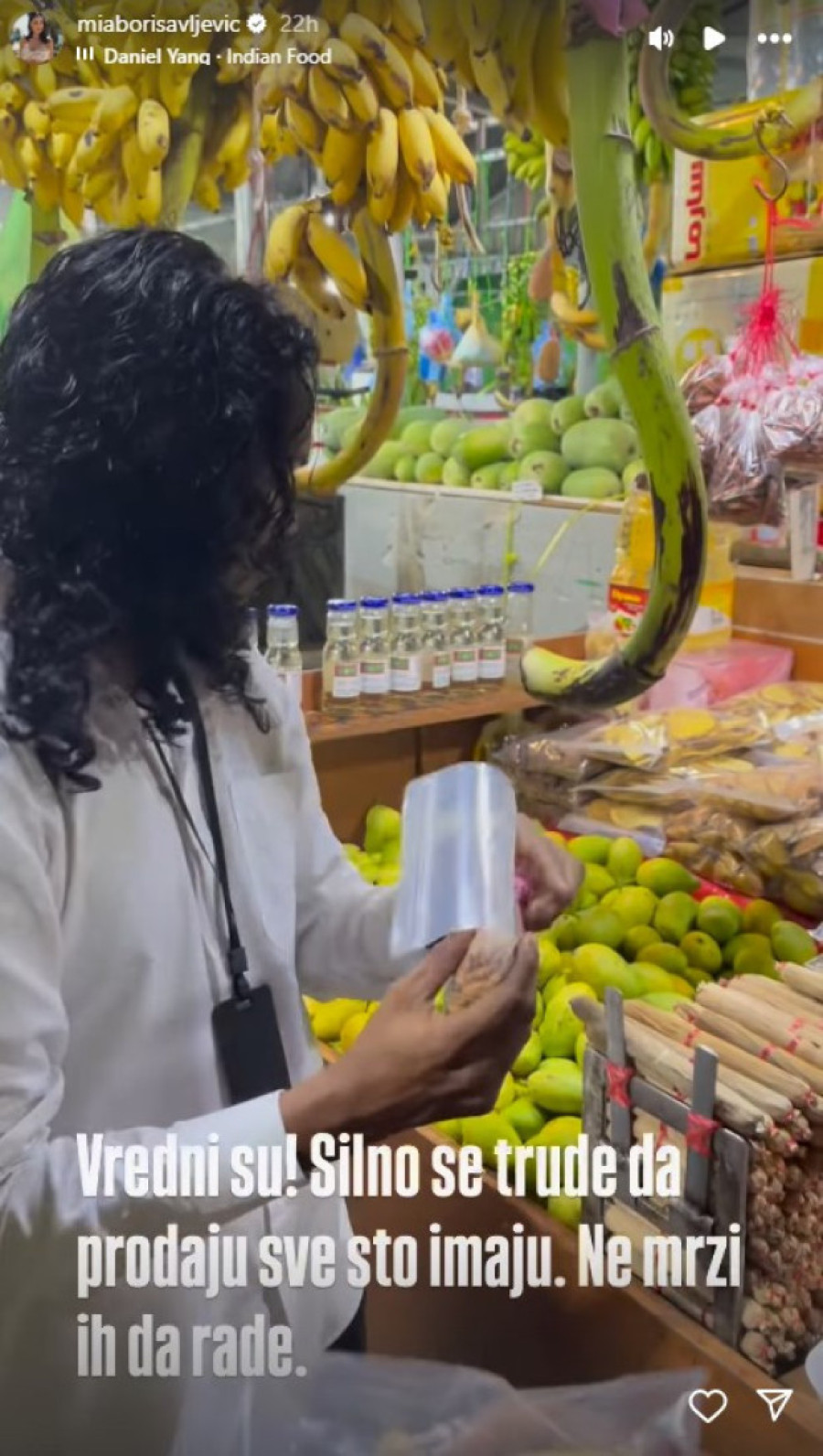 Mia Borisavljević otišla je sa suprugom Bojanom Grujićem i ćerkama Emom i Teom na putovanje, pa ostala i zatečena izvesnim detaljima. Ne otkrivajući mesto koje obilazi istakla je kako je "tu smrad neobjašnjiv", da nemaju restoran, niti normalnu školu.