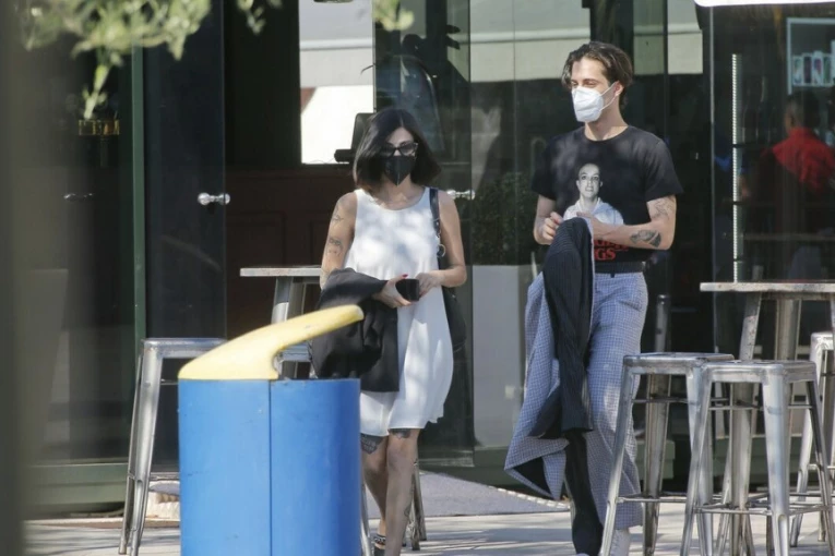 Njegova devojka, poznata influenserka Đorđa je obukla belu haljinu koja je lepršala oko nje, crne papuče i tašnu sa ukrasnim lančićem.