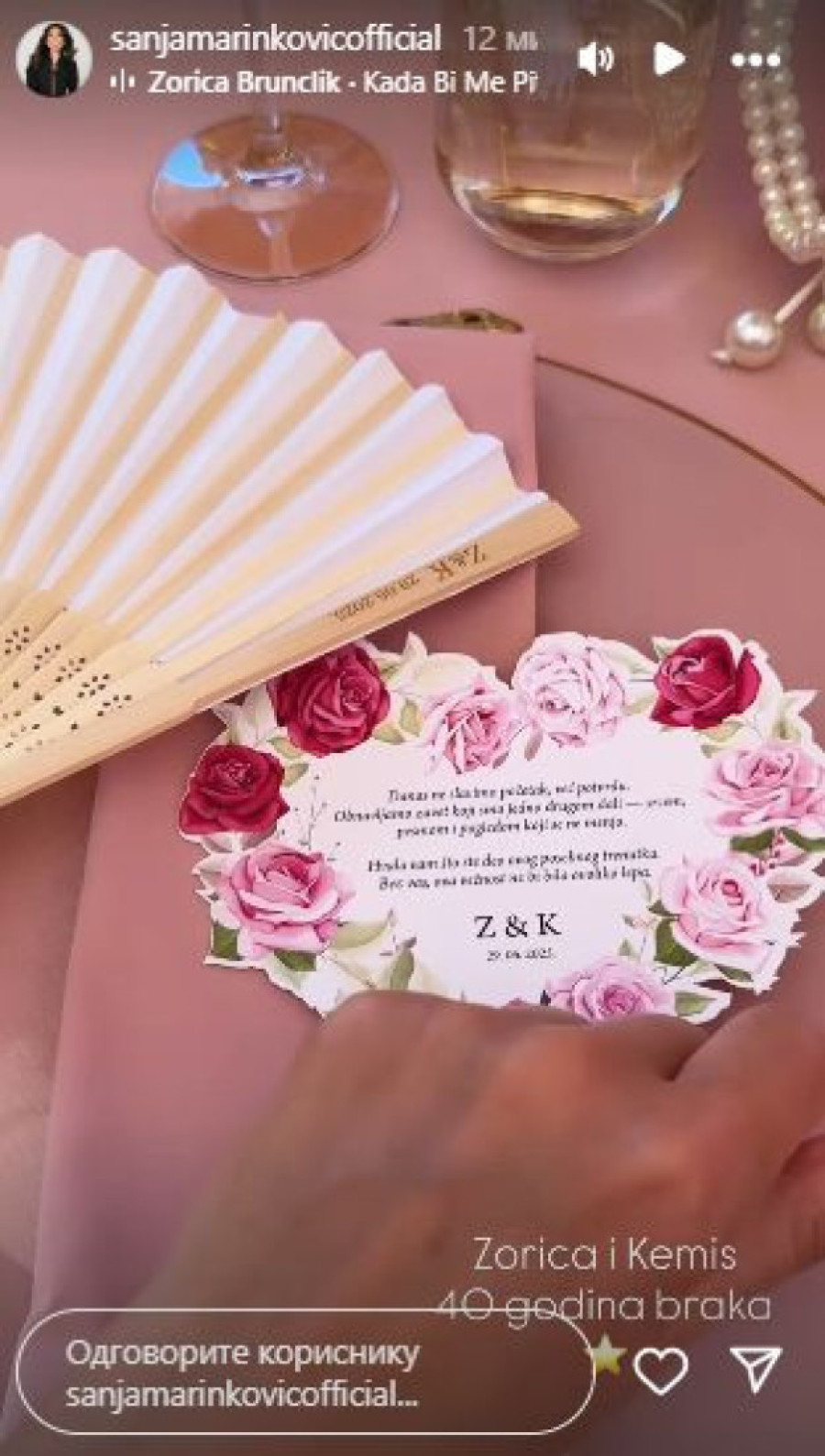 - Nismo nijednog pevača zvali da bi došao da peva. Pitali smo Acu za prvi ples, ali ako on ne želi i to nam je okej. Pustićemo je na zvučnik i plesati; kada je on čuo, rekao je da mu je zadovoljstvo i da će vrlo rado to da uradi - kazala je bila za medije pevačica, koja danas obeležava i 40. godišnjicu braka.