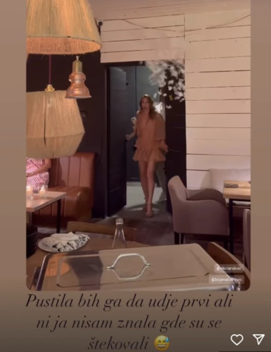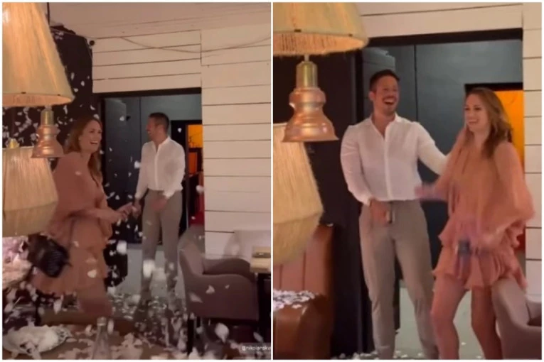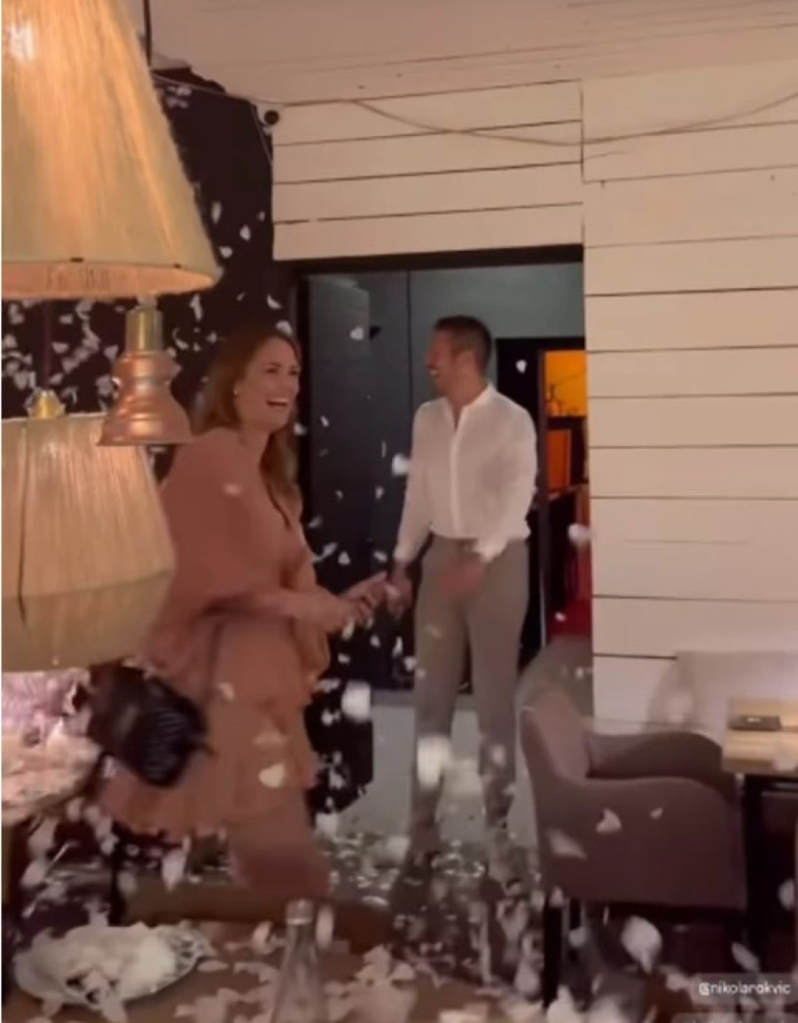 Na svom nalogu na Instagramu podelila je i delić atmosfere sa slavlja. Na snimku se vidi trenutak kada su ona i Nikola ušli u restoran, a njegovo iznenađenje bilo je više nego očigledno.
