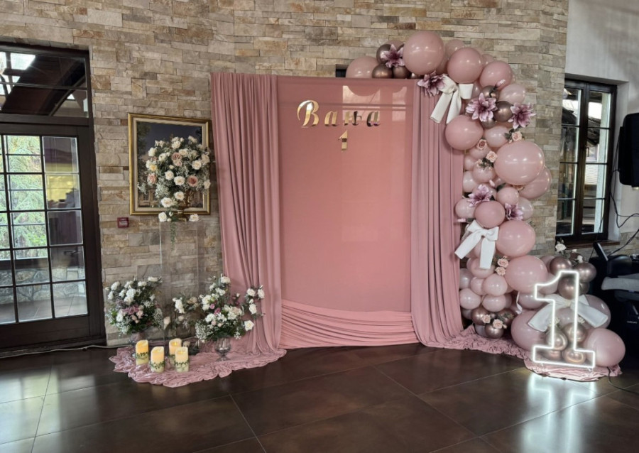 Dekoracija je bila nežna – dominirali su baloni u roze nijansama, cveće i dekorativne mašne koje su dodatno doprinele svečanoj atmosferi.
