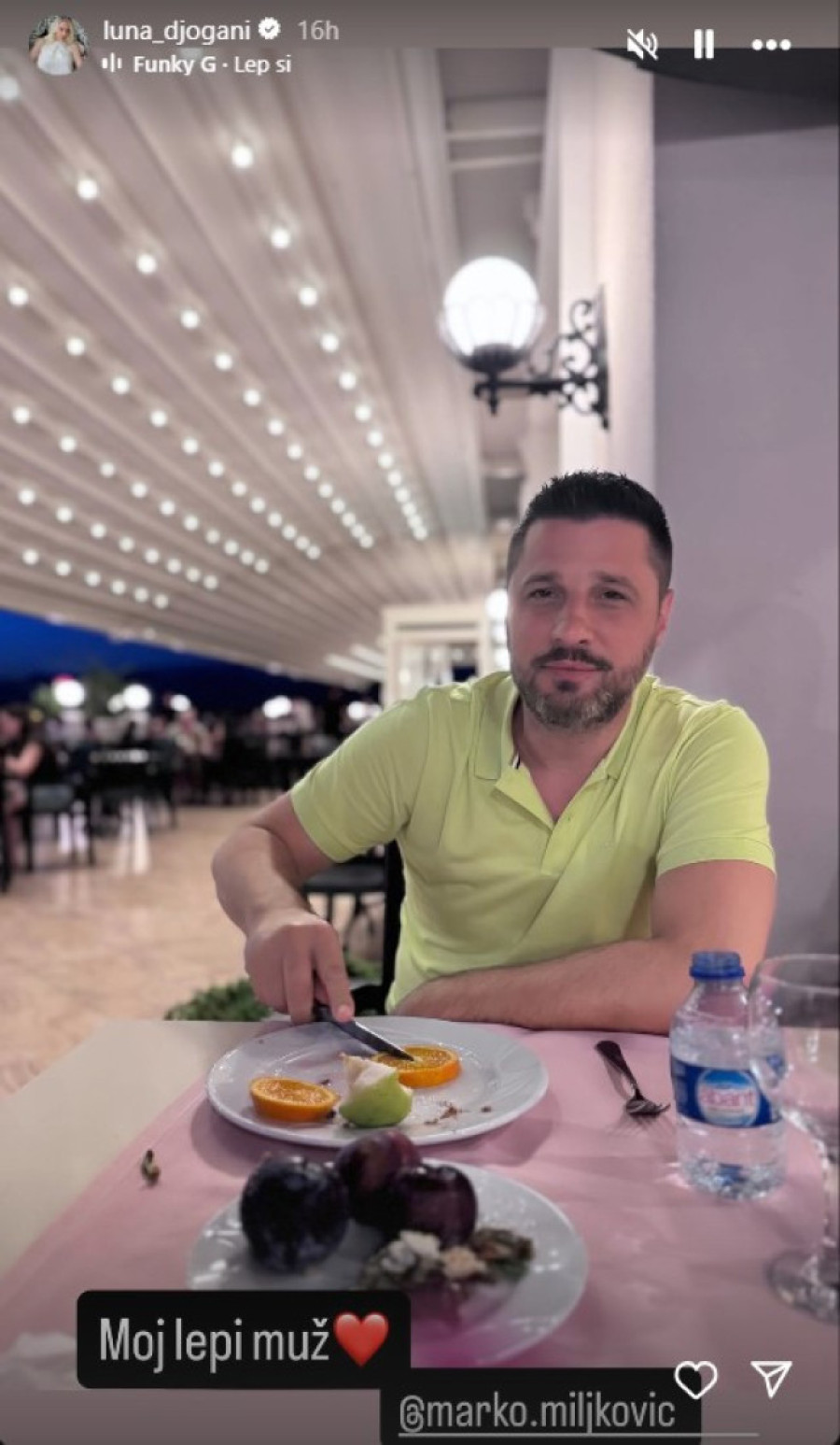 U prelepom ambijentu, uz miris mora, Luna je podelila fotografiju tanjira prepunog morskih plodova, dok je Marko, i više nego očigledno, uživao u svakom trenutku pored svoje izabranice.