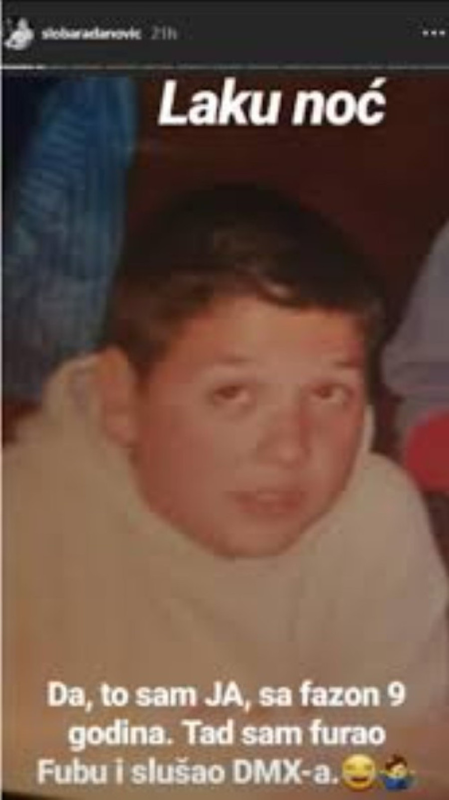 - Da, to sam ja, sa fazon devet godina. Tad sam furao Fubu i slušao DMX-a - rekao je Sloba tada.