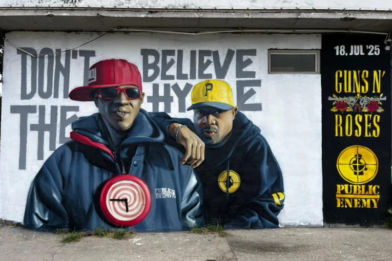 Juče je oslikan mural posvećen kultnoj rep grupi Public Enemy, koja će se naći u ulozi specijalne predgrupe te večeri.