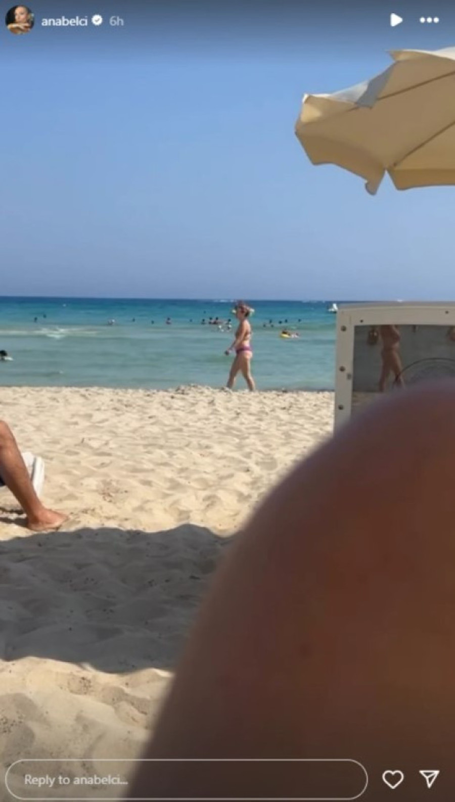 Na jednoj od slika, Anabela pozira na plaži u crnom kupaćem kostimu, a pažnju odmah privlači njen zanosni dekolte. U drugom kadru, zabeležila je pogled preko svojih nogu, otkrivajući miran i sunčan ambijent idealan za punjenje baterija.