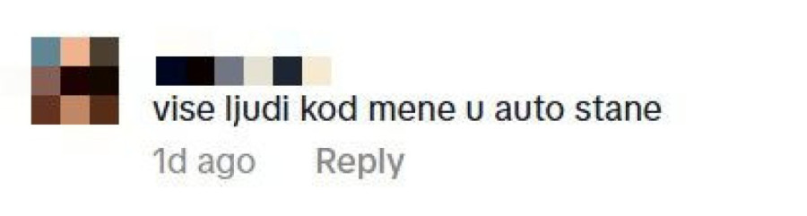 - Više ljudi kod mene u auto stane - istakla je jedna korisnica TikToka kraj videa, ali tu svakako nije bio kraj.