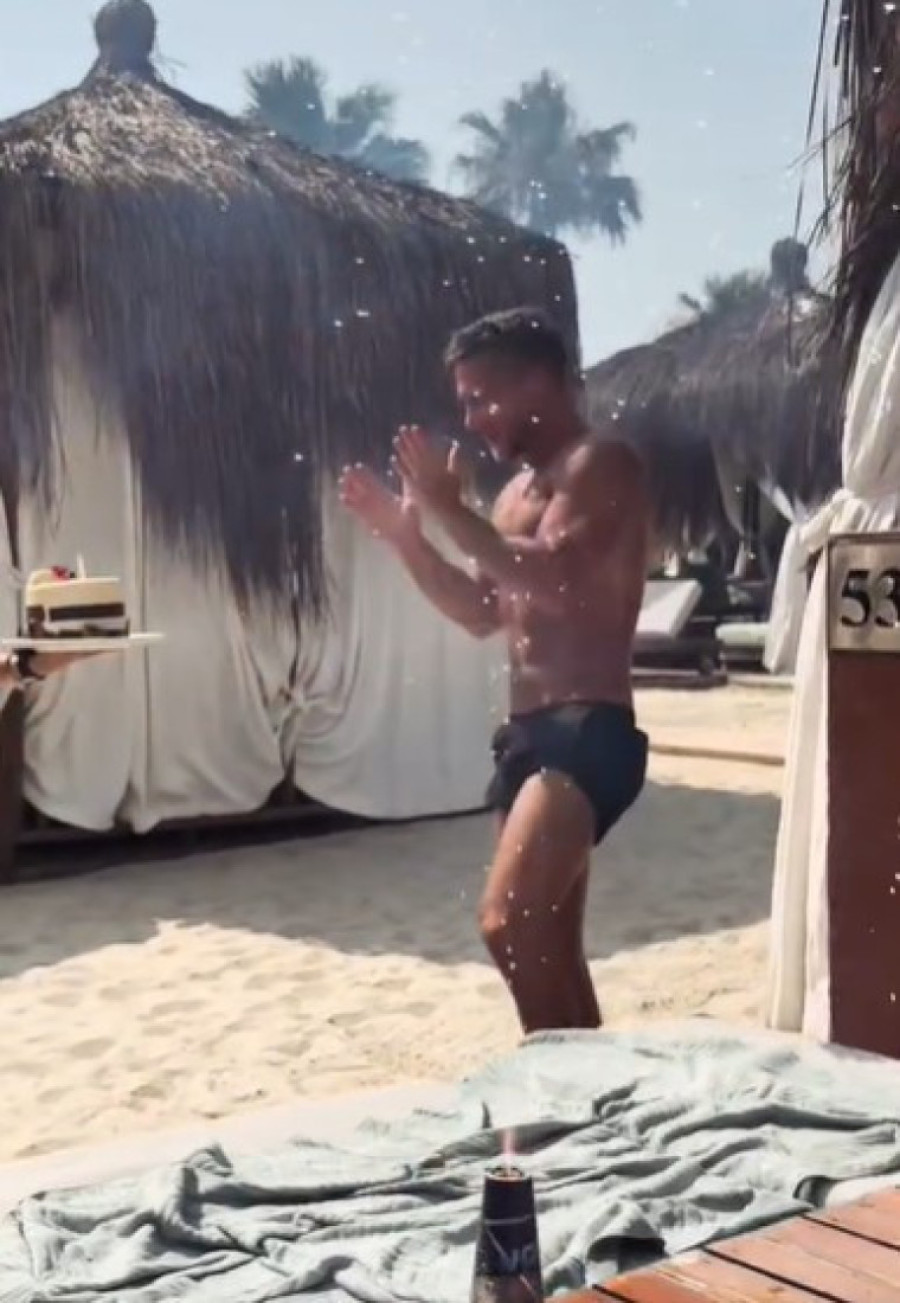 Osoblje na plaži pevalo mu je rođendansku pesmu i doslovno su ga okupali šampanjcem, a pevač nije skidao oduševljenje i osmeh sa lica zbog iznenađenje koje su mu najbliži priredili.