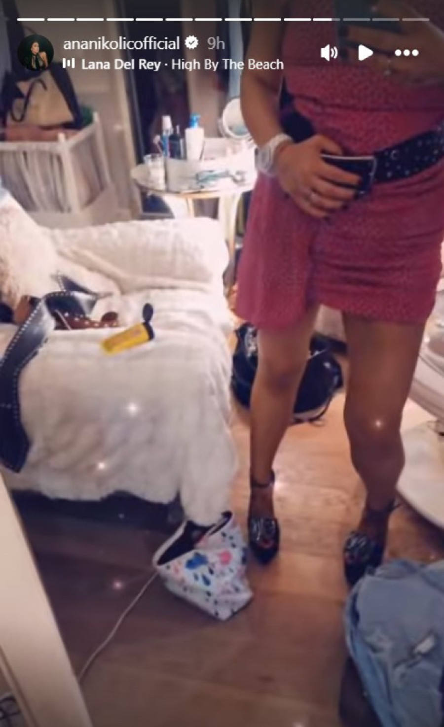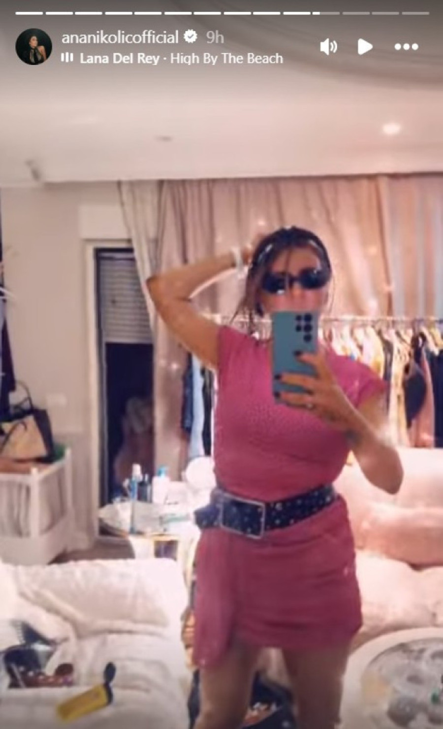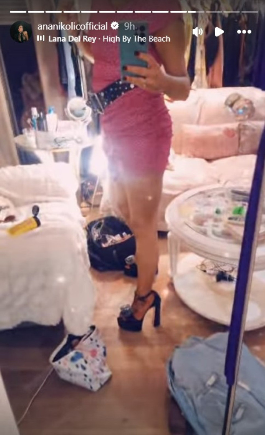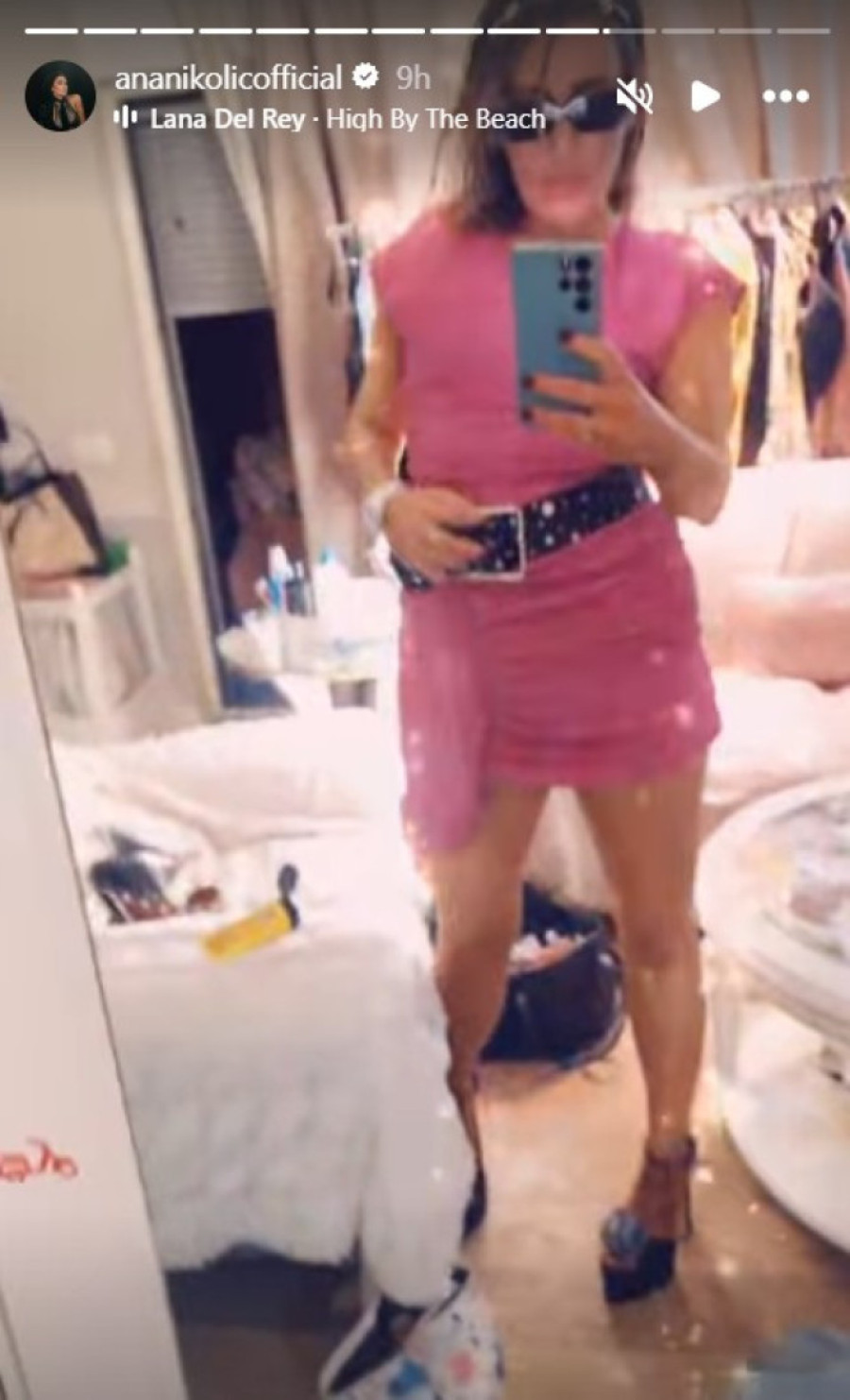 Na snimku koji je objavila, Ana se pojavila u mini haljini i štiklama, ali pažnju nije privukao samo njen izgled, već i nered u dnevnoj sobi.
