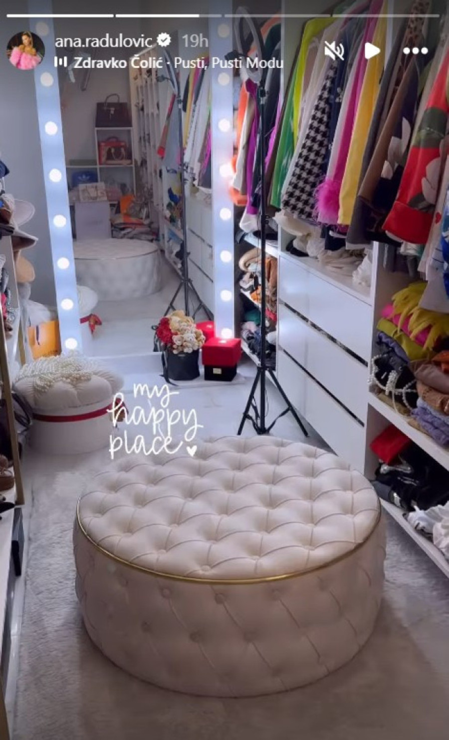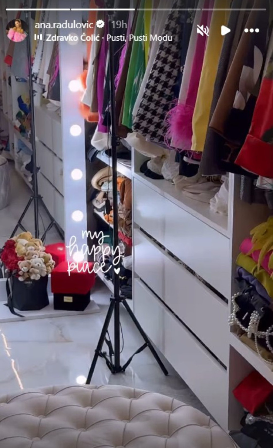 Na društvenoj mreži Instagram, Ana je podelila snimke iz luksuznog garderobera, uređenog s posebnom pažnjom.