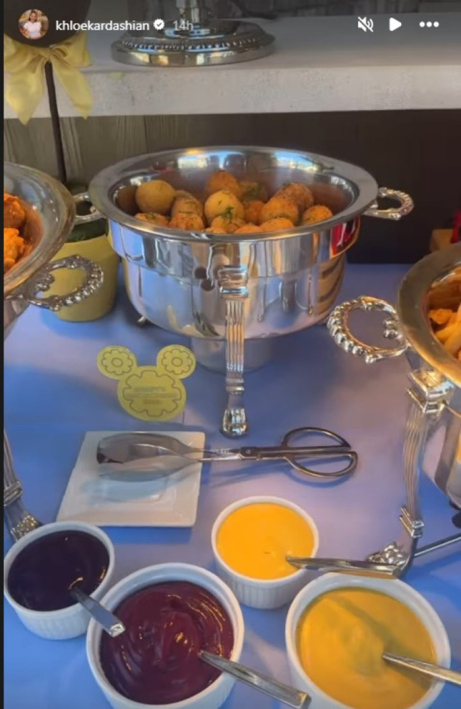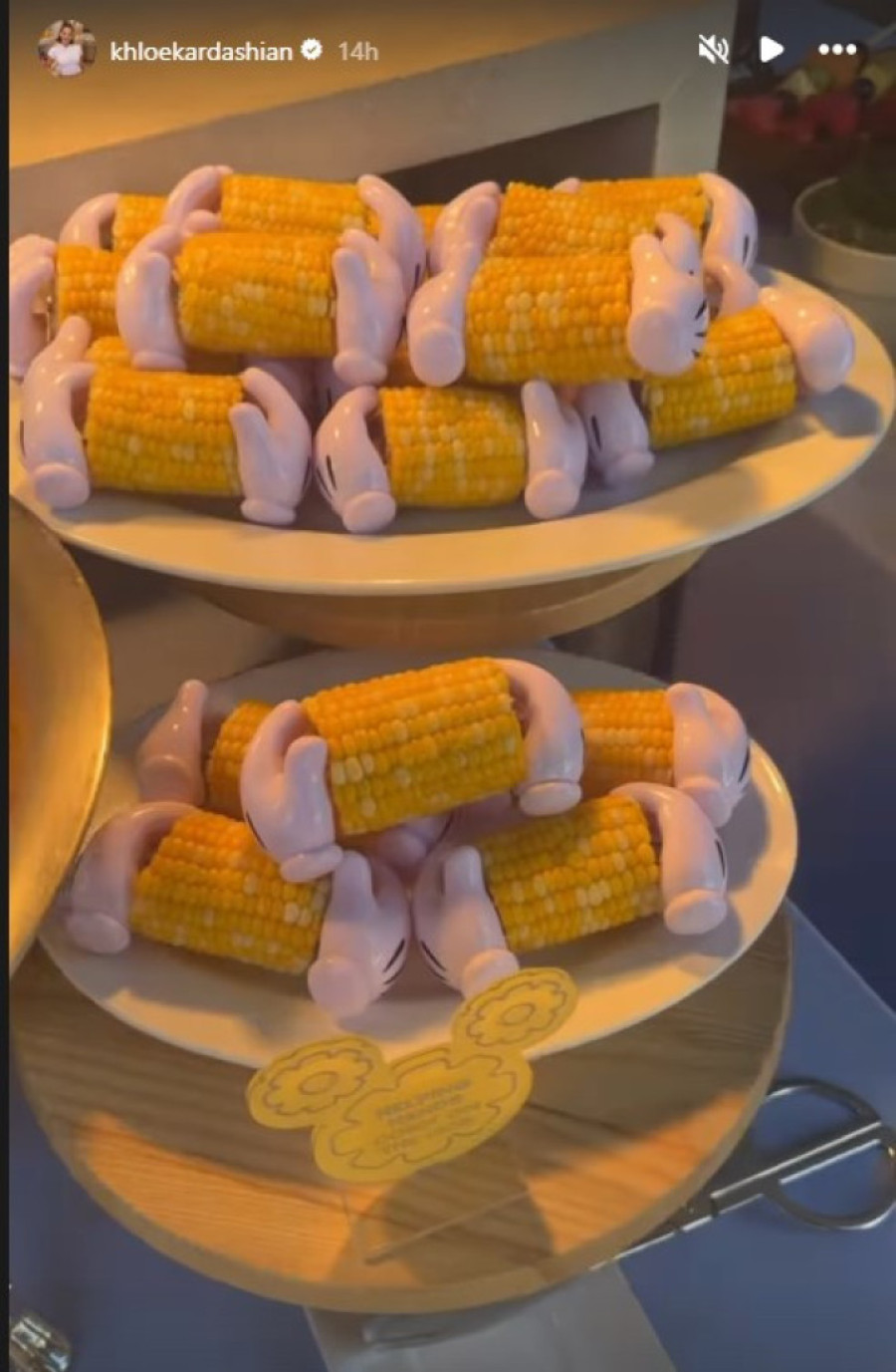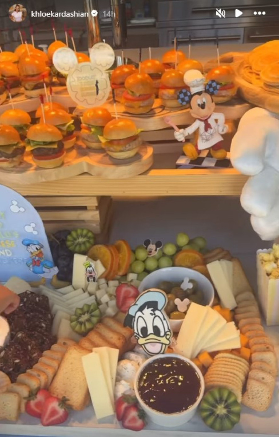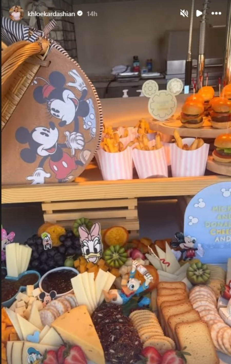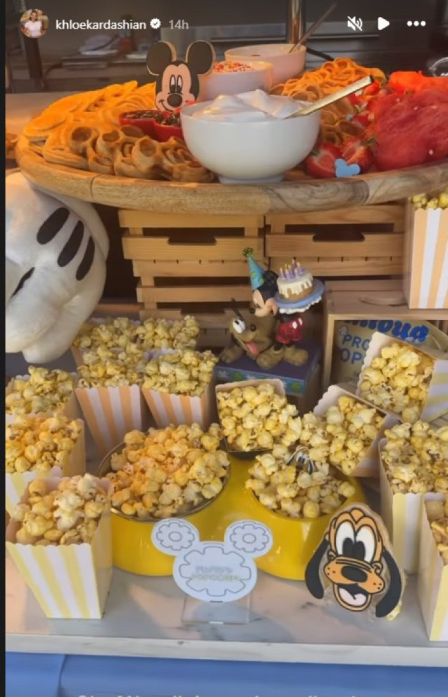 Kada je reč o posluženju – Kloi nije štedela. Imali smo priliku da vidimo višeslojnu tortu s Mikijevom glavom u centru, zatim pladnjeve s burgerima, kokicama, pomfritom, sirevima, voćem, kuvanim kukuruzom, a tu su bili i brojni slatkiši poput mafina, keksića i ušećerenih jabuka – sve servirano s glamuroznim dodacima.