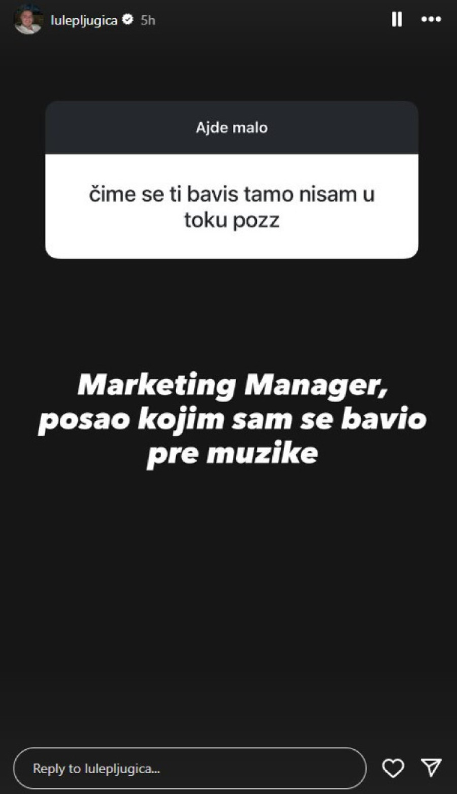 - Marketing menadžer, posao kojim sam se bavio pre muzike - iskren je bio nekadašnji reper.