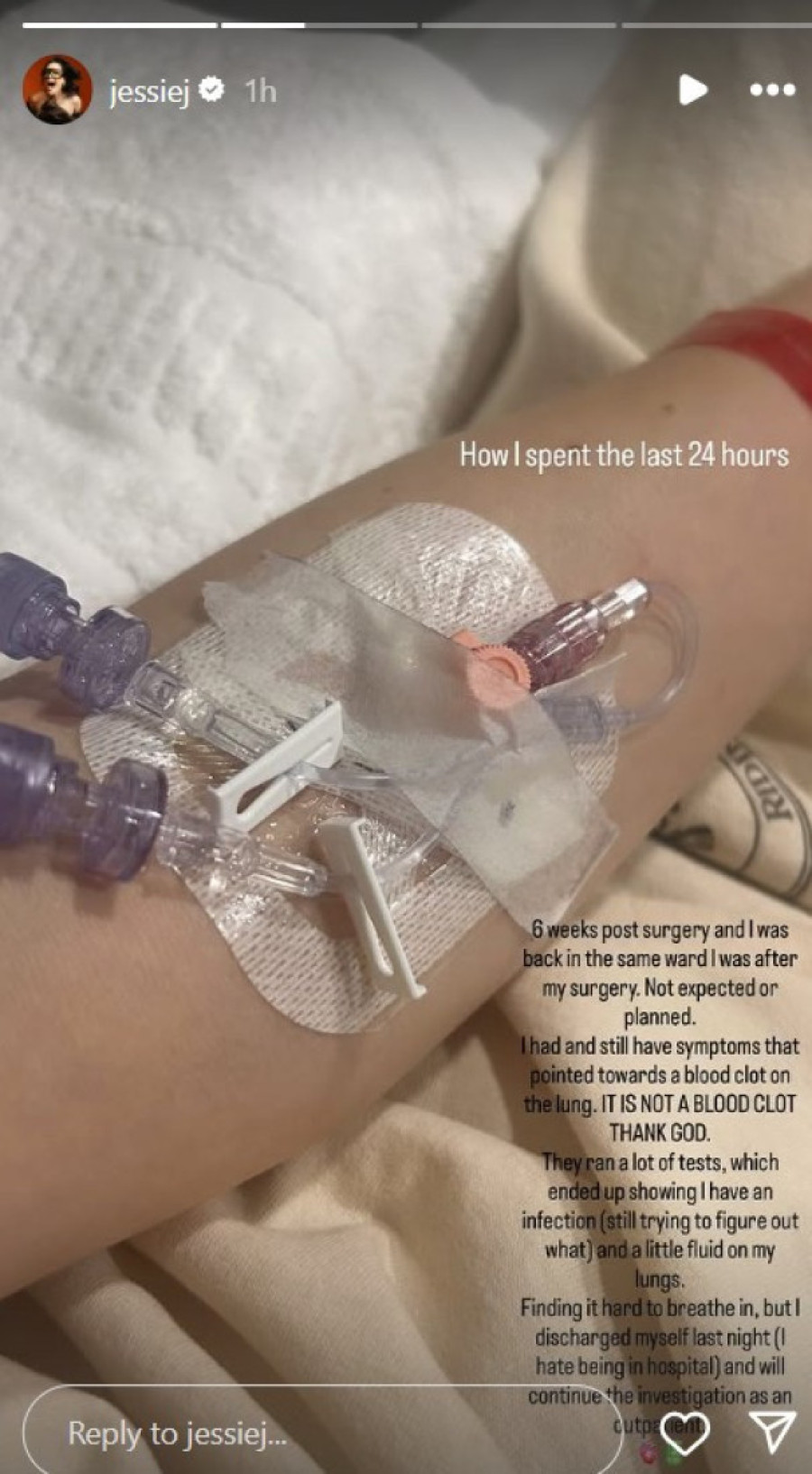 Ona se oglasila fotografijom iz bolnice, uz sledeću poruku: