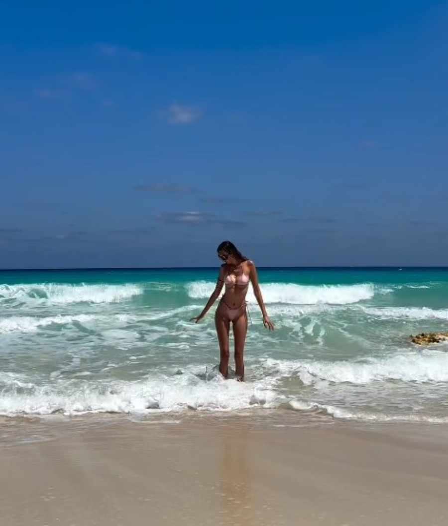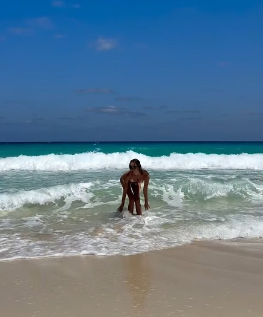 Ovaj put, Anika je pozirala na plaži u Egiptu, odevena u zlatni bikini, pokazujući savršenu figuru i bronzani ten.