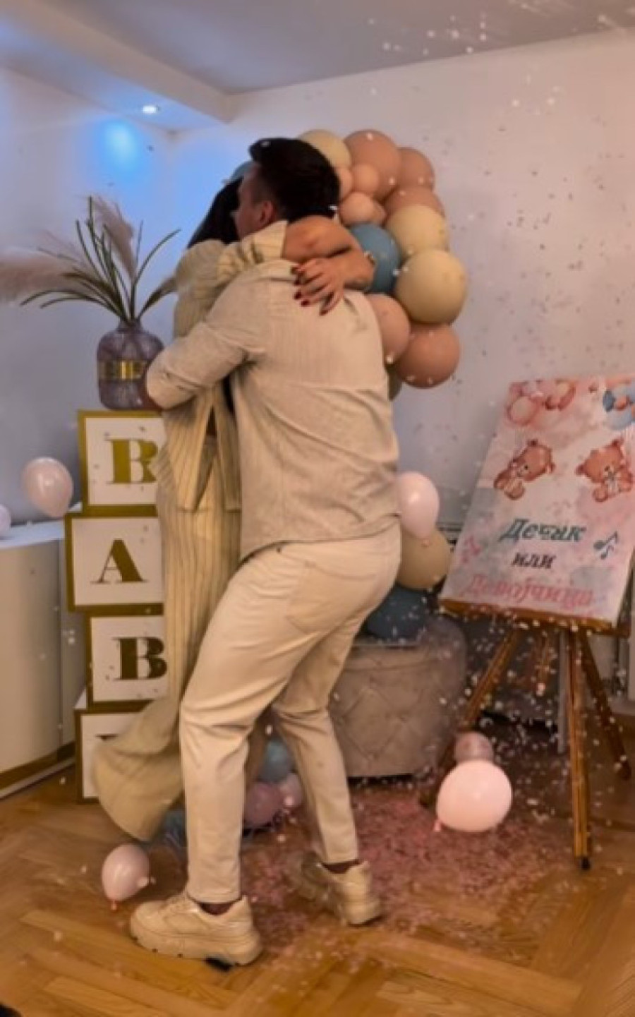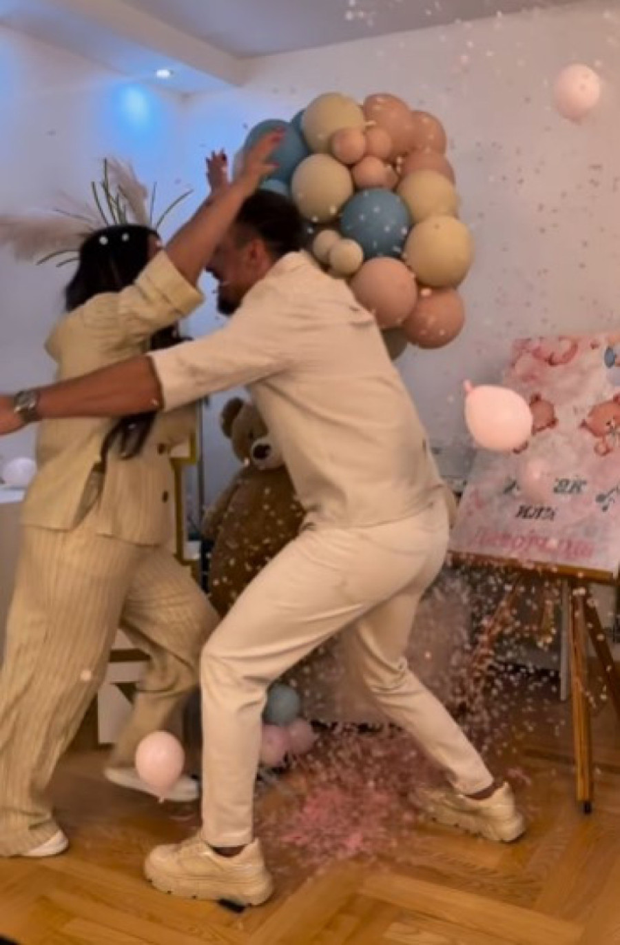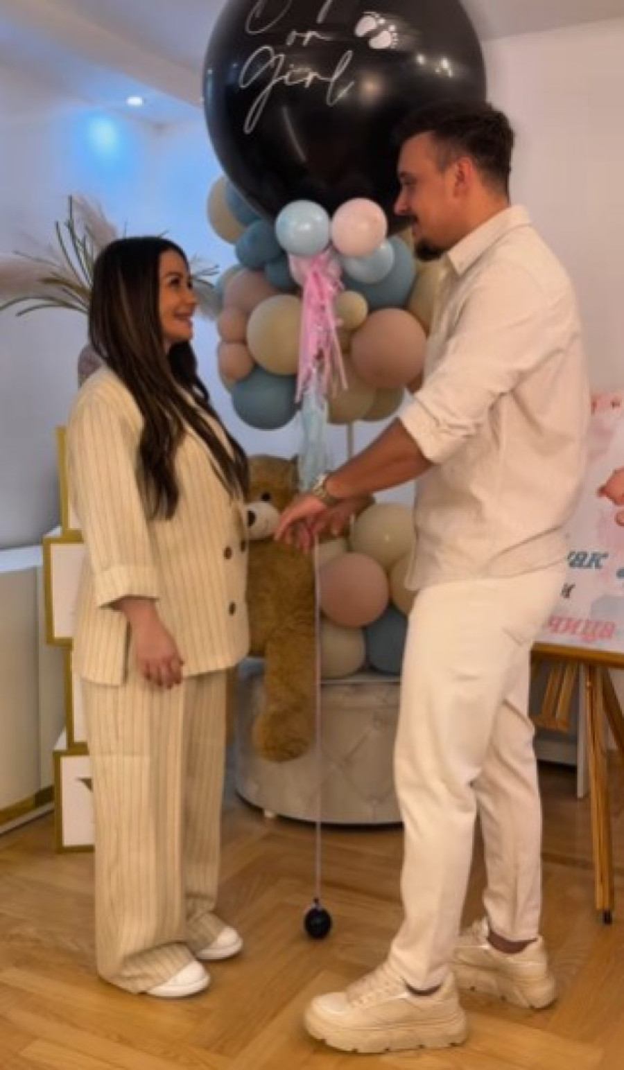 Na snimku koji su objavili na društvenoj mreži Instagram, Aleksandra i Stevan zajedno su probušili balon, a iz njega se videla roze boja.