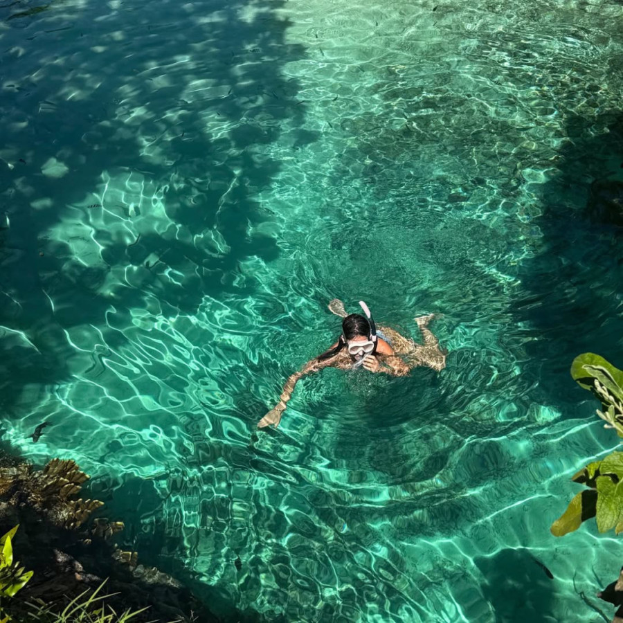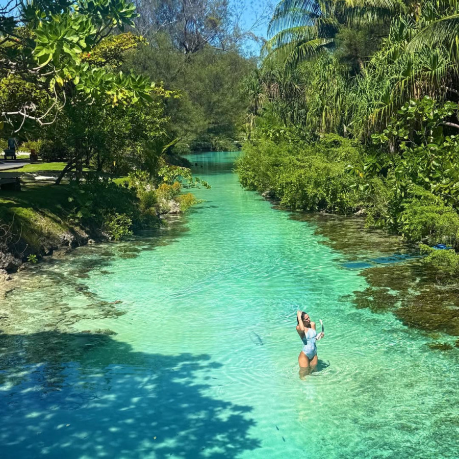 Na Instagramu je objavila nekoliko fotografija iz vode i u kupaćem kostimu, dok je na nekima ronila okružena ribama, a na drugima pozirala na drvenom doku sa šeširom na glavi. Osmeh na njenom licu i opuštena atmosfera otkrivaju da bi, kako sama kaže, na ovom mestu mogla i da živi.