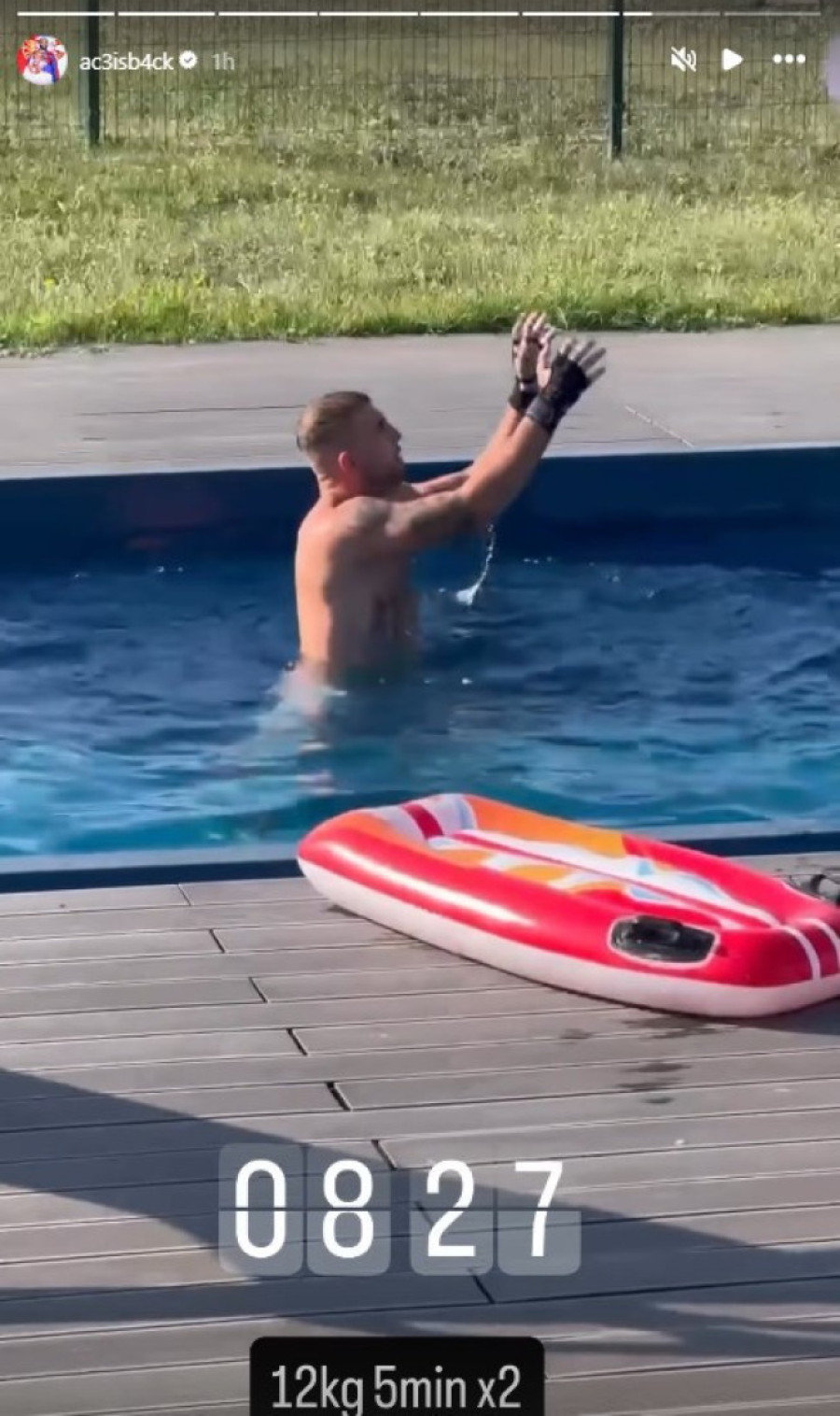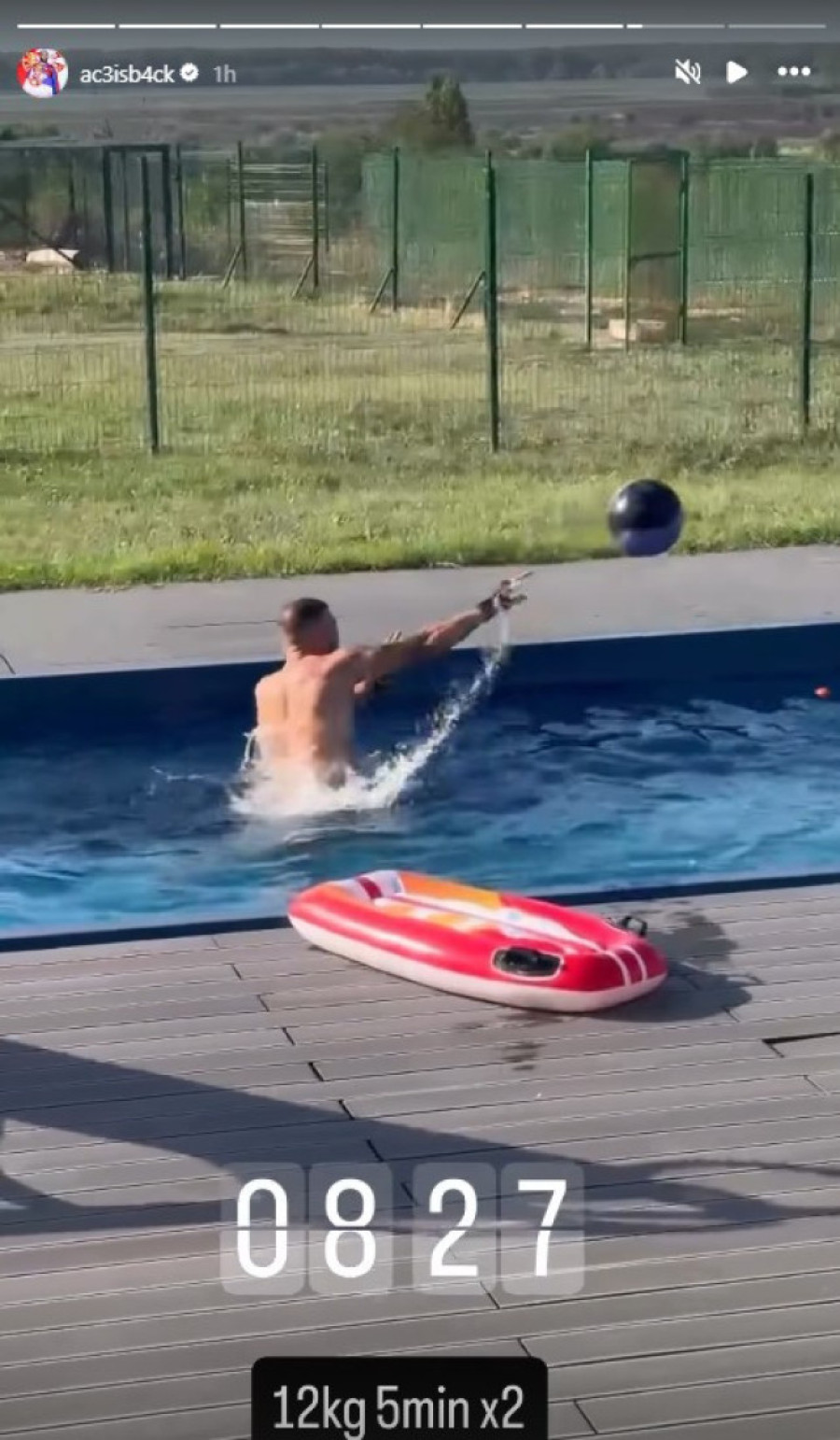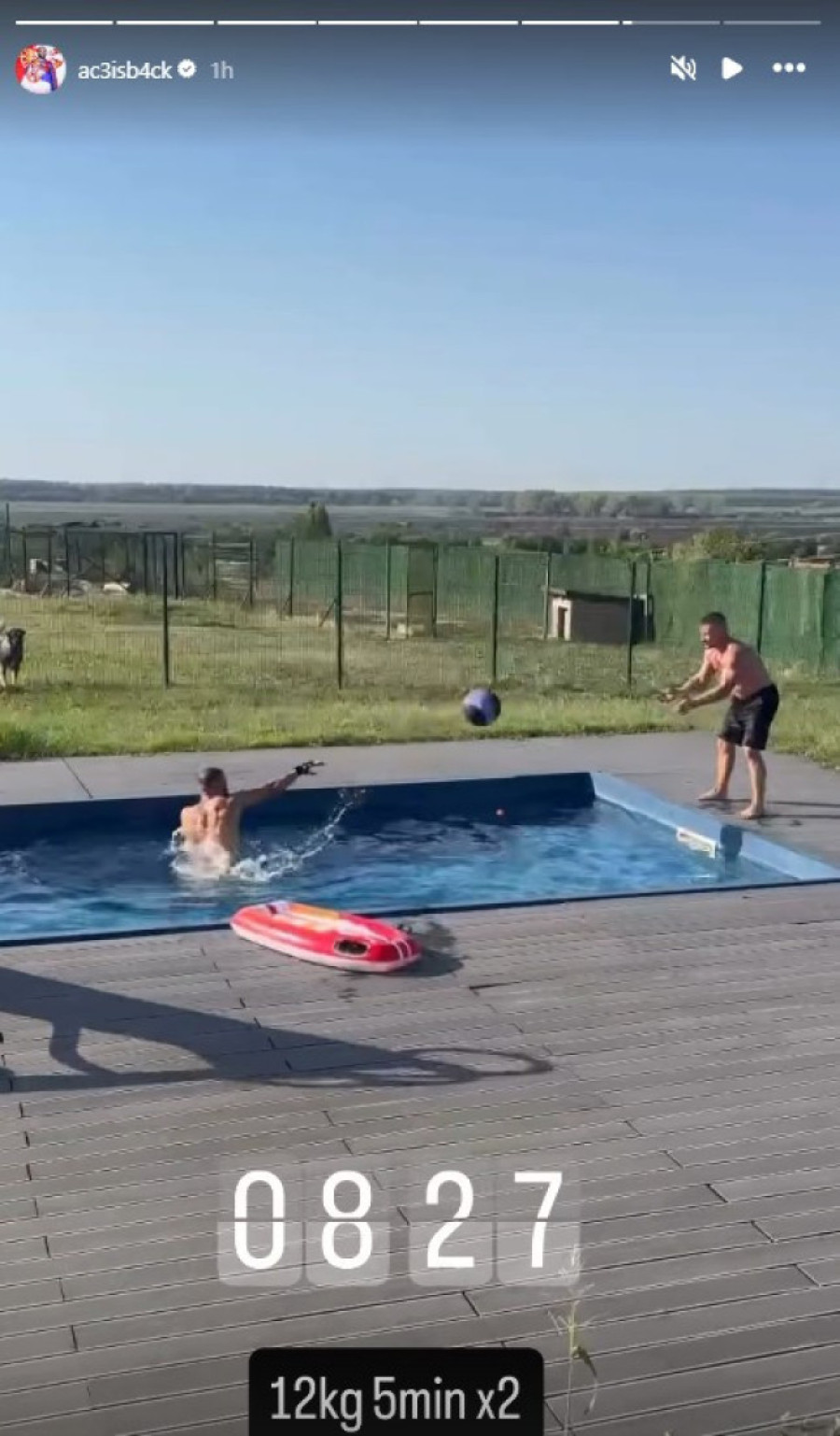 Naime, tokom leta Veljko trenira u prirodi pa je tako putem svog Instagram profila objavio sliku svoje teretane na otvorenom, a svima je za oko zapao njegov trening kondicije i snage u bazenu.