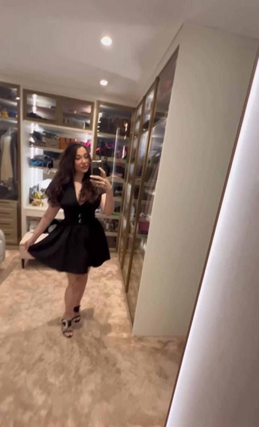Sanja se snimala dok sedi na podu, a u kadru se jasno vidi impresivna kolekcija odeće i obuće, vredna nekoliko hiljada evra. Posebno je istakla da joj je upravo ova prostorija omiljeni kutak u stanu, a ono što se može primetiti jeste da pevačica preferira krem tonove u enterijeru.