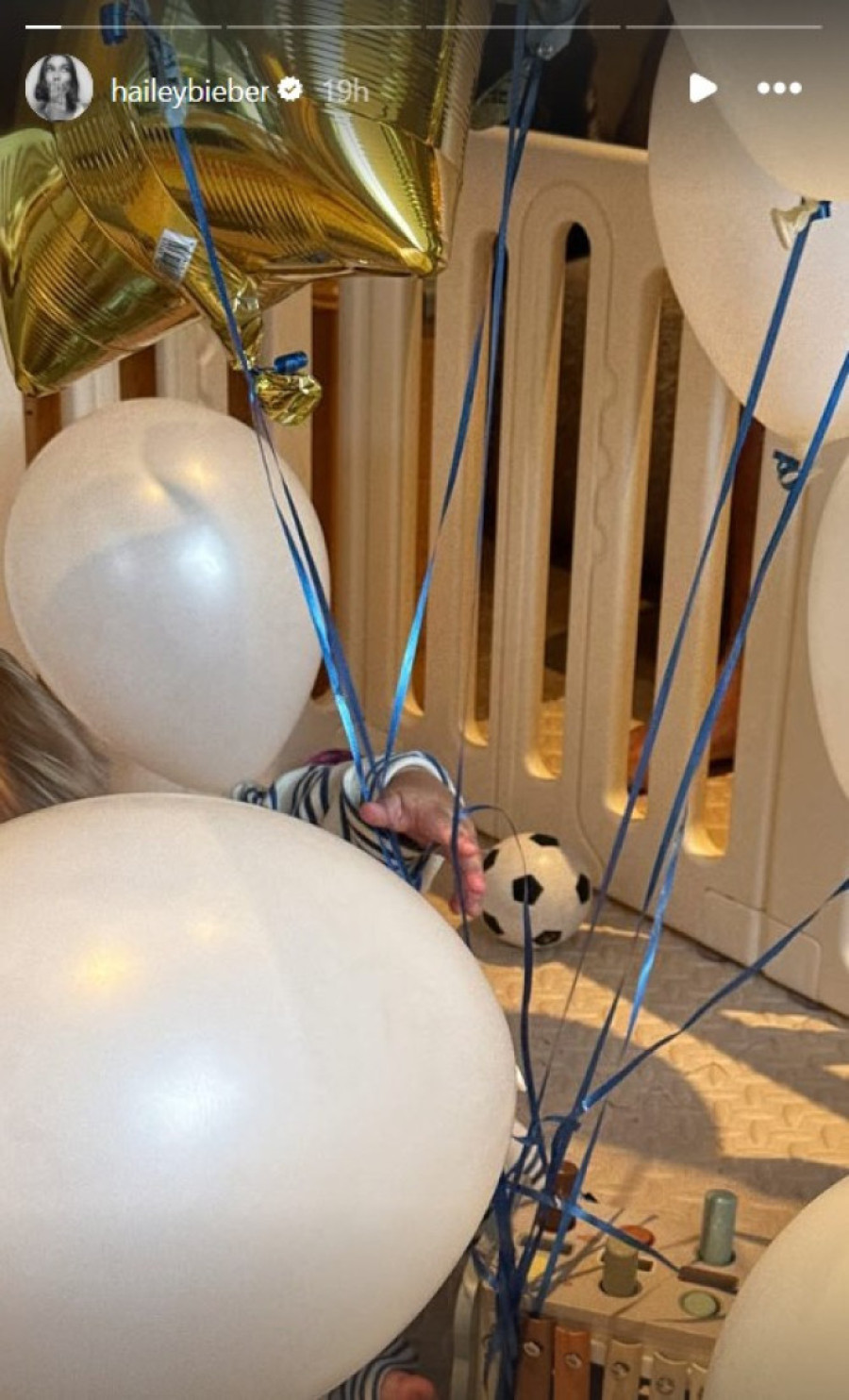 Na svom Instagram storiju, prikazala je kako se mali Džek igra sa plavim i belim balonima i novim igračkama, uključujući i fudbalsku loptu.
