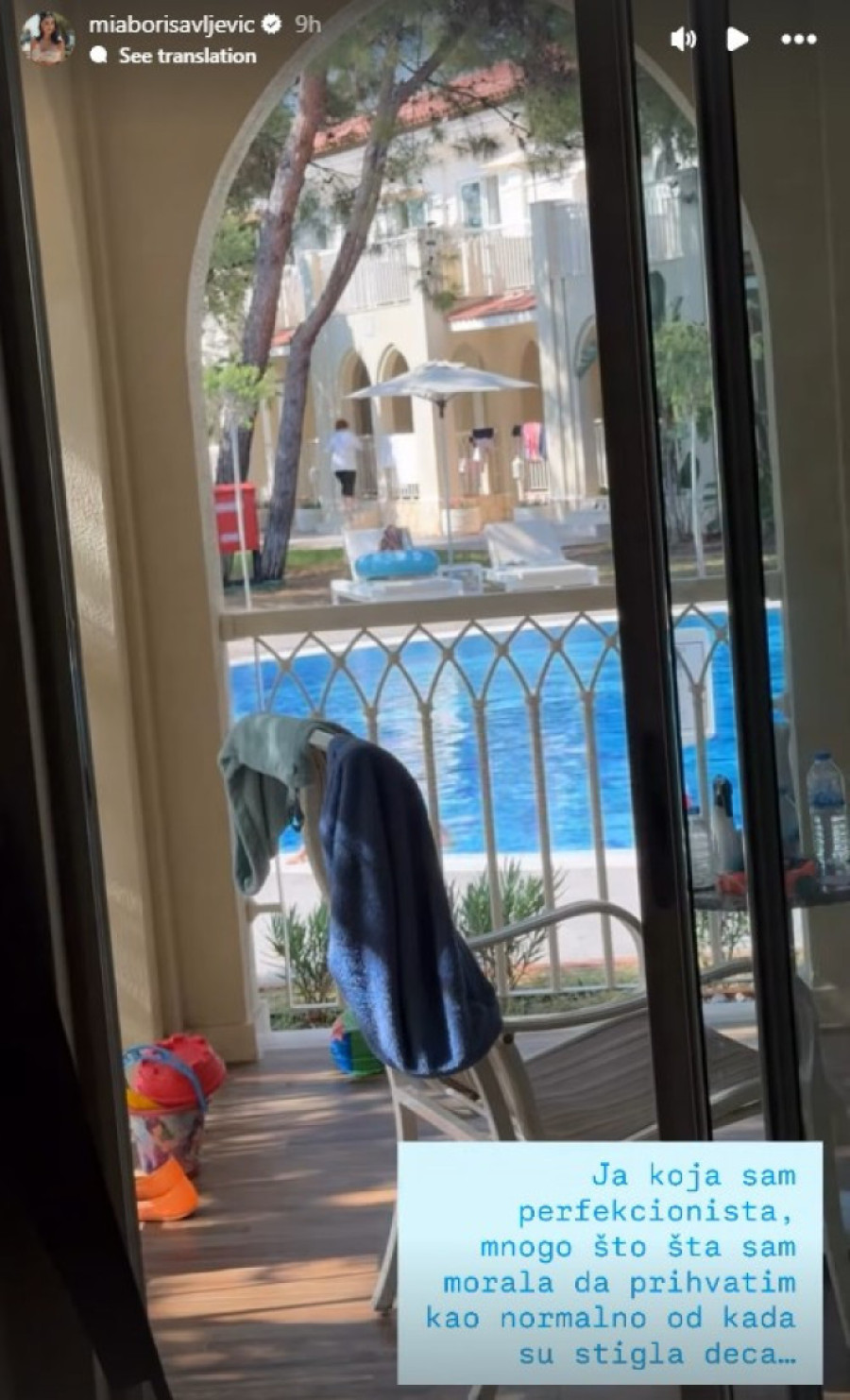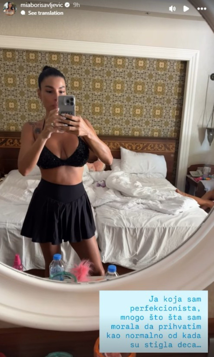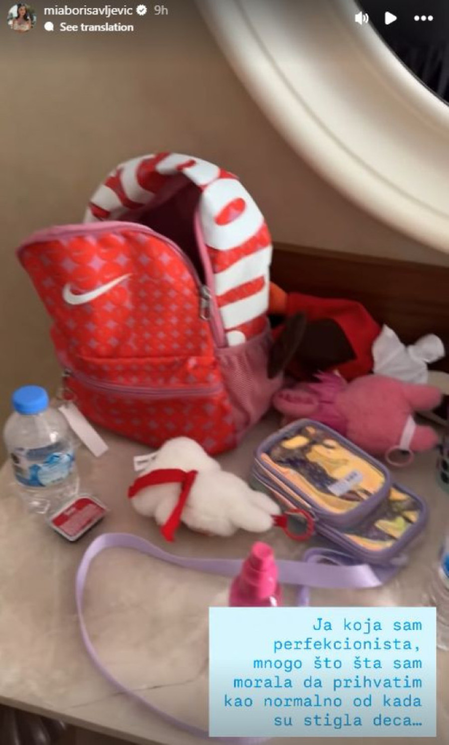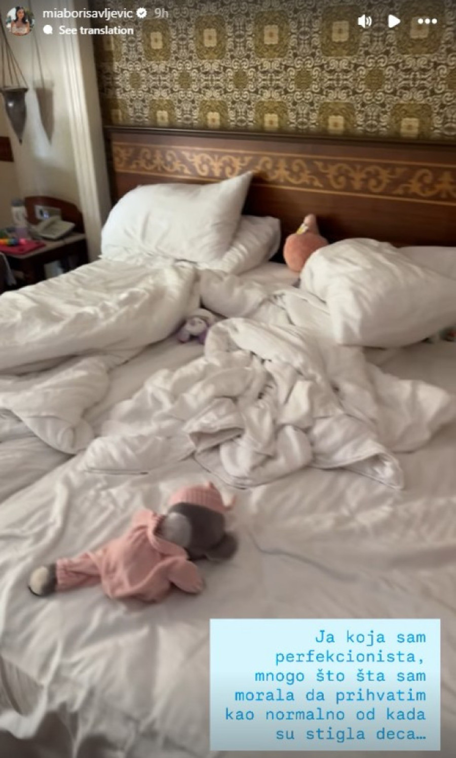 Iako je osoba koja voli kada je sve pod konac, Mia Borisavljević prema sopstvenom priznanju "sa time se pozdravila pošto su došla deca". Kratkim snimkom iz hotelske sobe, sa odmora, u kojoj je vladao haos, to je fanovima putem društvene mreže Instagram i dočarala.