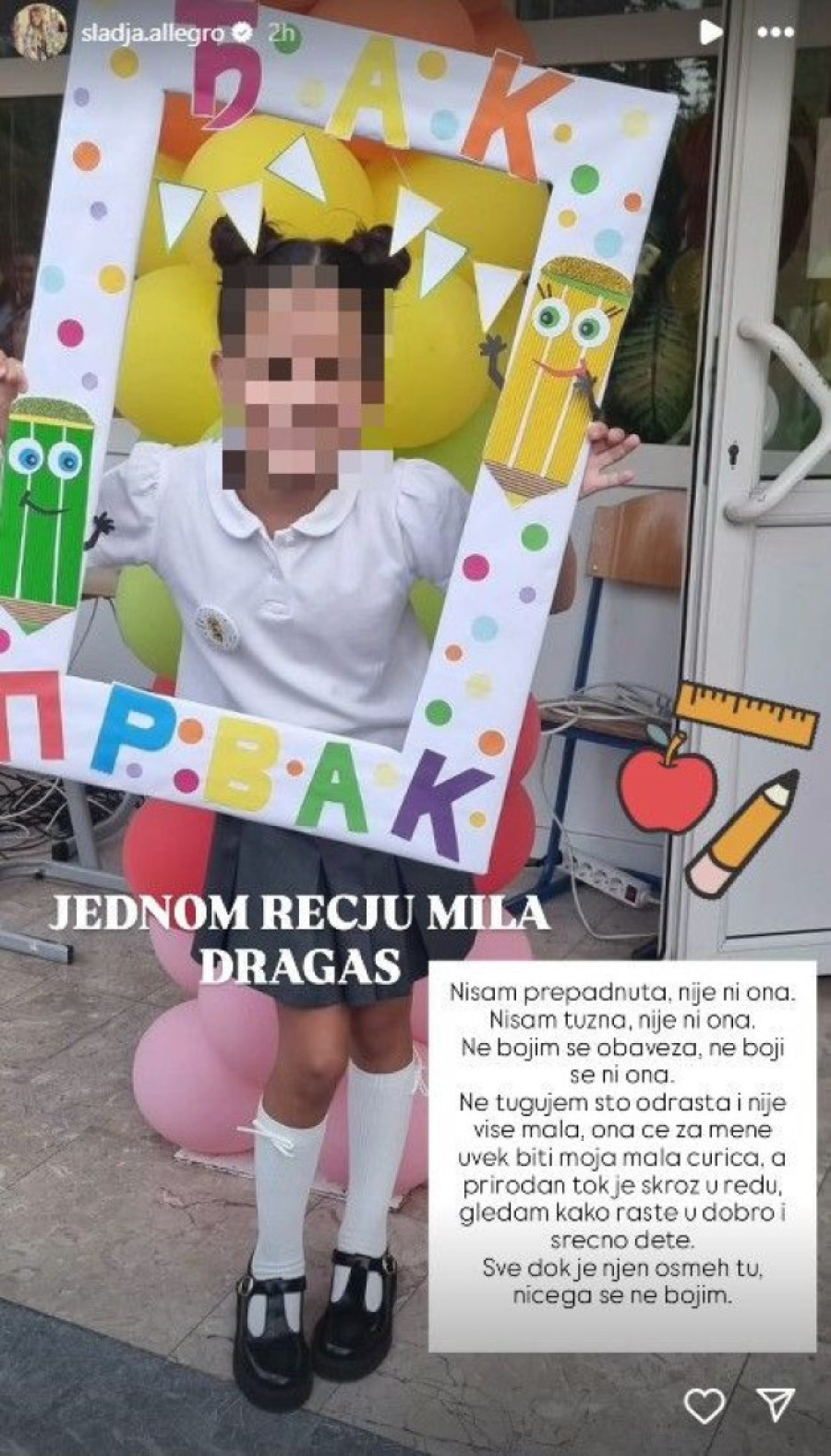 Slađa Alegro ispratila ćerku Milu u prvi razred: Sve dok je njen osmeh tu, ničega se ne bojim! (FOTO)