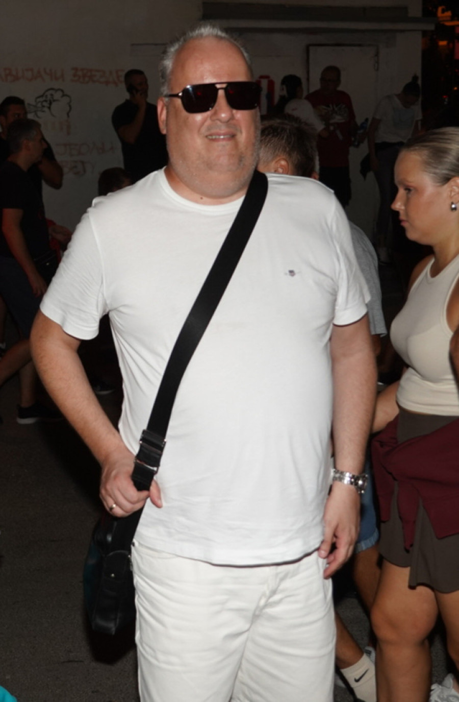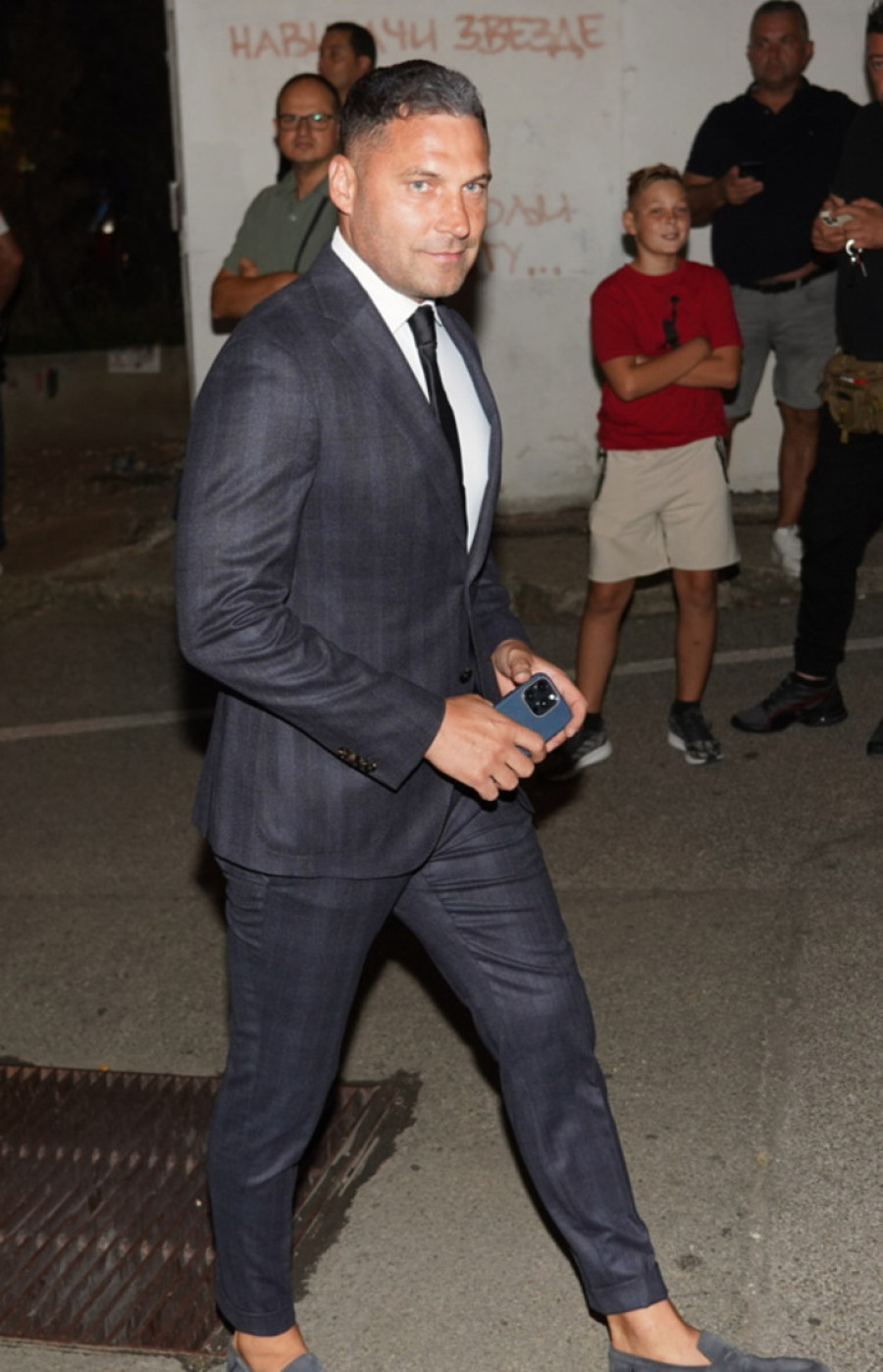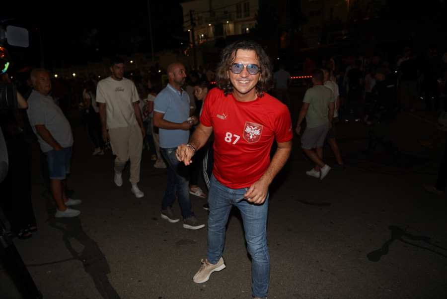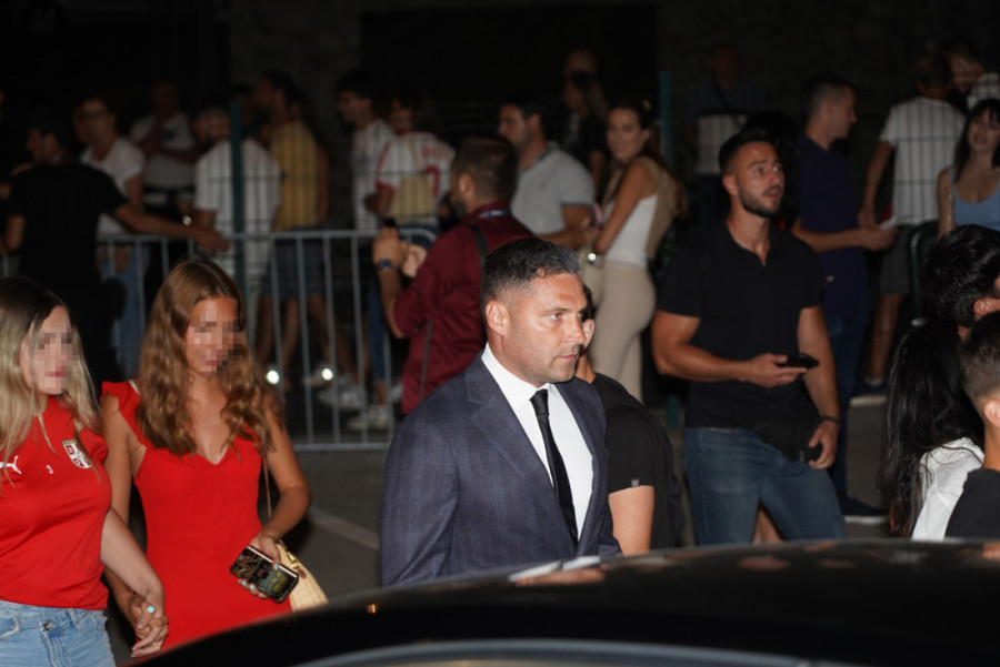 Među onima koji su pružili podršku našim fudbalerima bio je pevač Radiša Trajković Đani, koji je na meč došao u društvu sina, u beloj košulji sa podvrnutim rukavima i crnim bermudama.