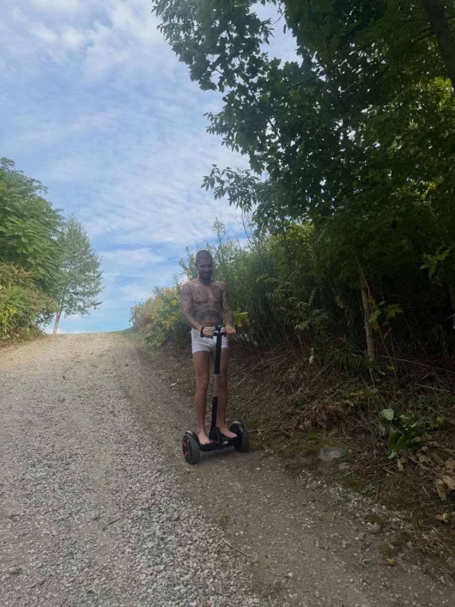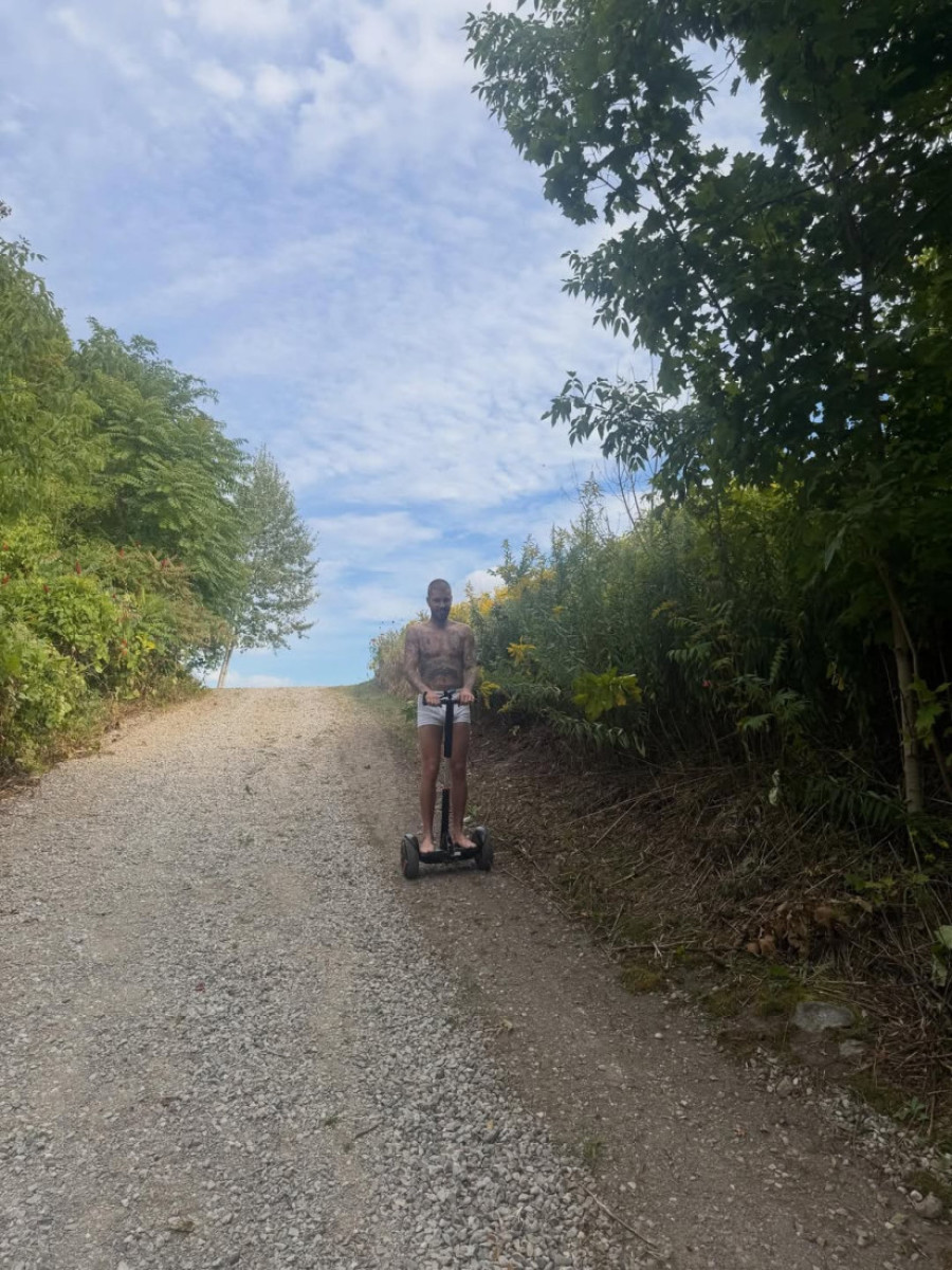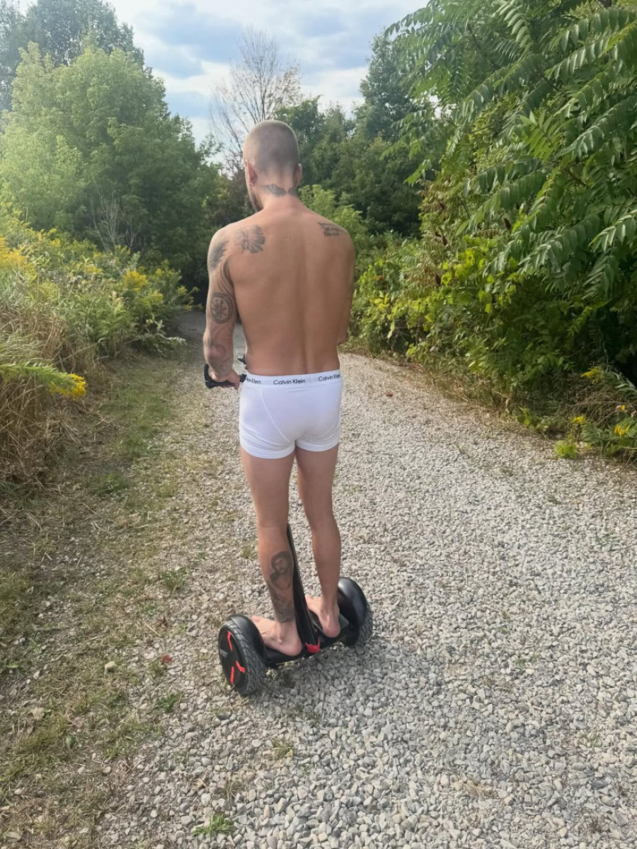 U sredu, 10. septembra, pevač je podelio galeriju od 10 fotografija na Instagramu, na kojoj se vidi kako vozi električni hoverbord kroz neravan teren i to samo u gaćama.