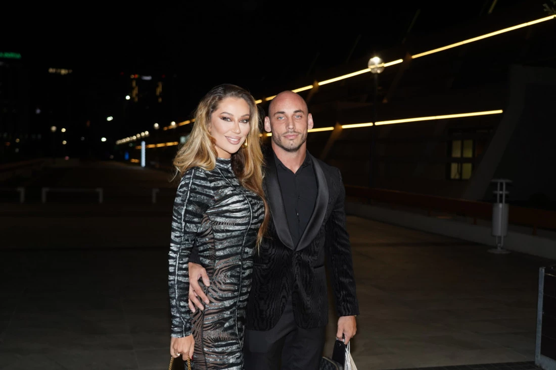 Na proslavu je stigla u pratnji svog supruga, Ivana Vardaja, koji je za ovu priliku poneo klasično elegantno odelo, upotpunjujući glamurozni izgled ovog estradnog para.