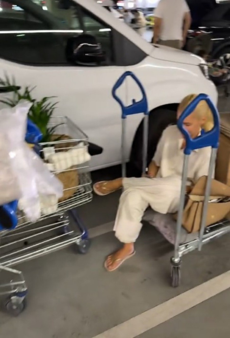 Jedan od simpatičnih momenata zabeležen je dok je Nataša, umorna od kupovine, sela između kolica na parkingu i gledala telefon, a Hana je to uz smeh objavila na Instagramu.