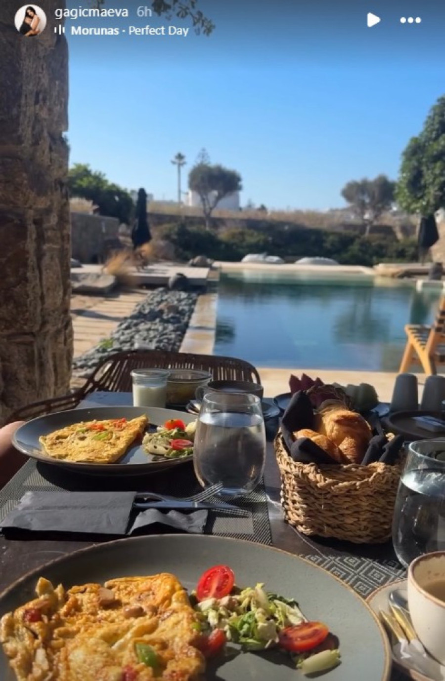 Ona je pokazala da uživa u miru, ali i u dobroj zakusci za doručak i to pored bazena.