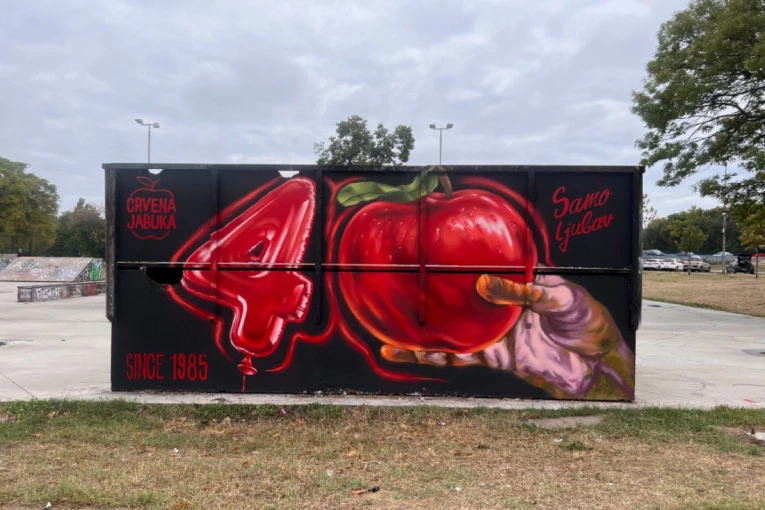 Naklonost publike muzici kultnog benda Crvena jabuka ne prestaje da iznenađuje! Tako je uoči velikih beogradskih koncerata u skejt parku kod Ušća osvanuo potpuno originalan mural posvećen legendarnom sastavu, na kom je vešto naslikan simbol benda: velika crvena jabuka i broj 4 koji uz jabuku simbolično označava 40 godina benda.