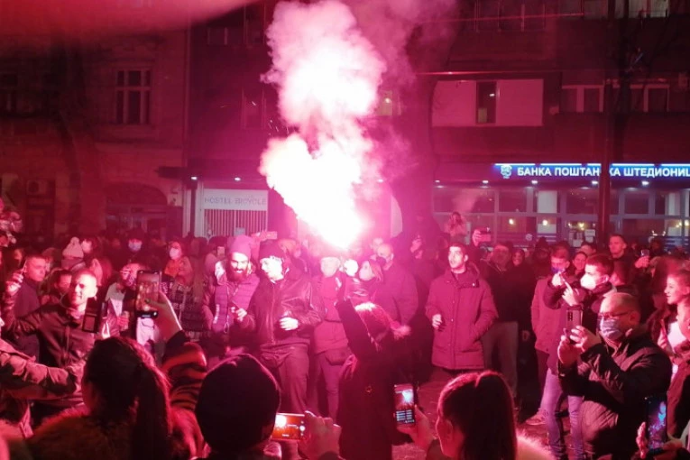 Mladi Dorćolci zapalili su baklje dok iz srca pevaju hitove koji se nižu jedan za drugim.