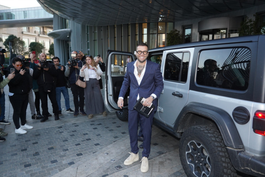 Pevač Boban Rajović pojavio se sa suprugom i sinom, te su zajedno su pozirali fotografima u elegantnim izdanjima.