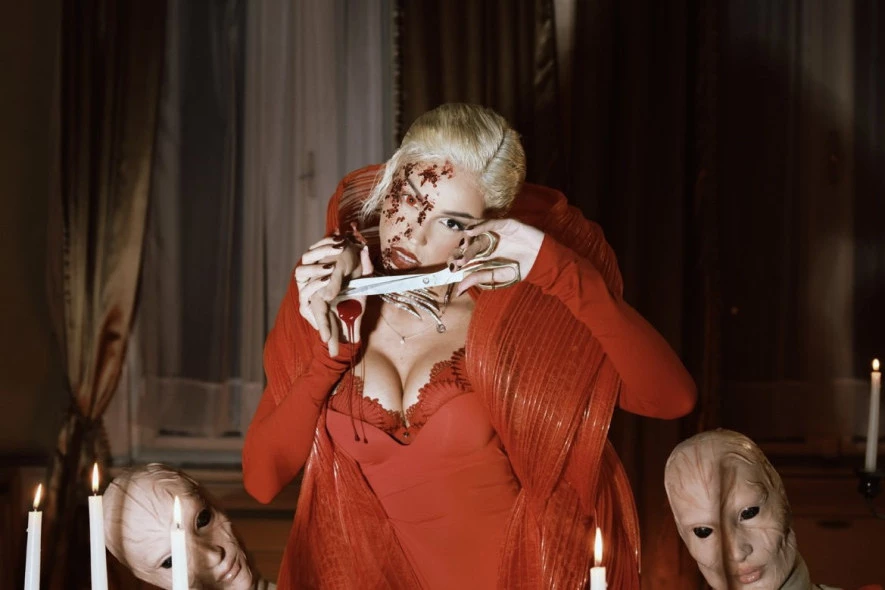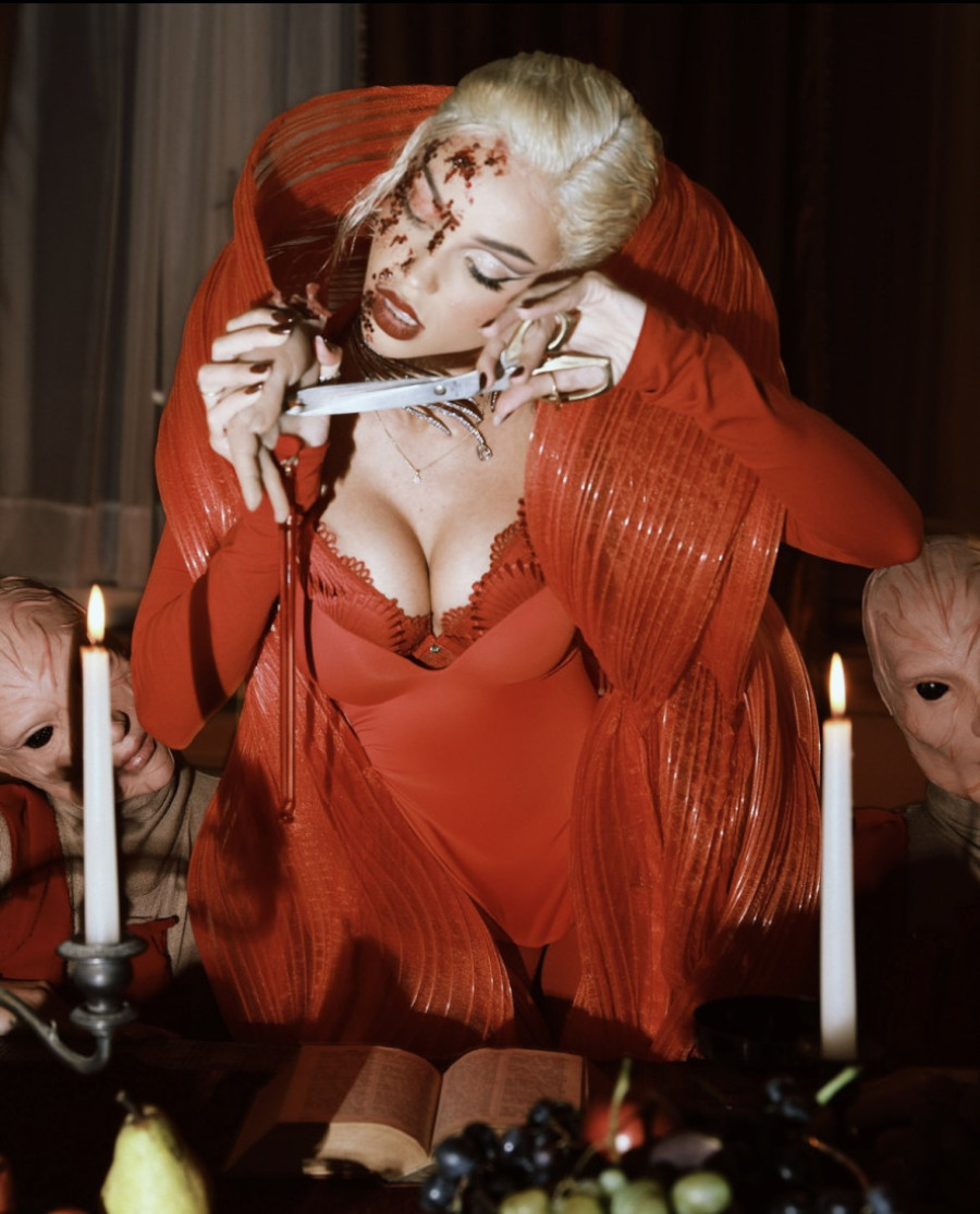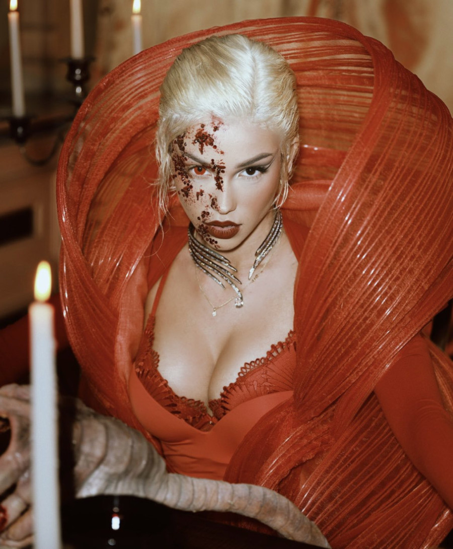 Pevačica je u svom performativnom stilu otišla korak dalje od klasičnih "horor" maski koje dominiraju u Noći veštica.