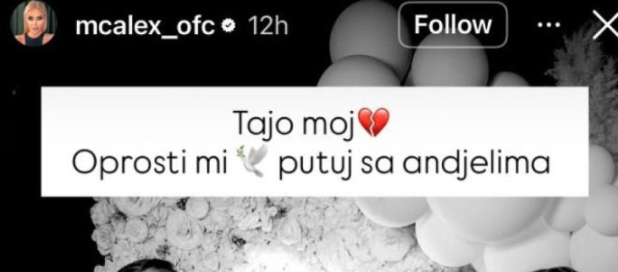 - Mc Alex je umro otac, nastupi se otkaszuju do daljnjeg. Javiće se pojedinačno svima kada bude u stanju. Molimo vas da razumete - glasilo je saopštenje koje je Aleks objavila, a u sledećim objavala se oprostila od oca.