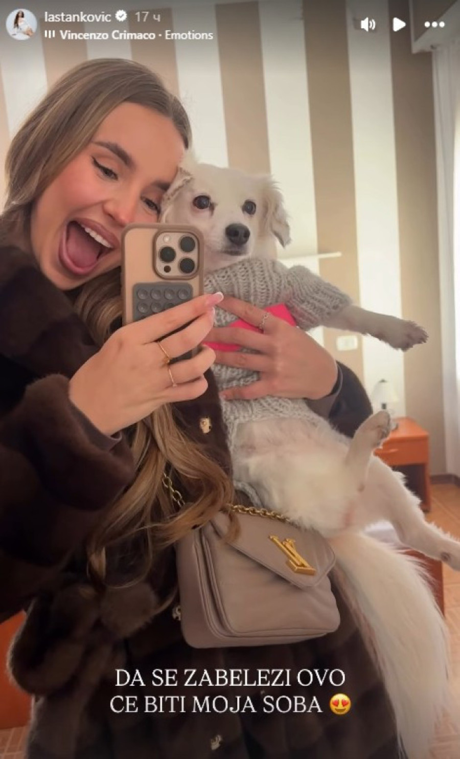 - Danas su mama i tata zvanično uzeli ključeve njihovog novog doma u Italiji, a ja mogu samo da im poručim da neću izbijati odavde - iskrena je bila u okviru svoje objave na Instagramu.